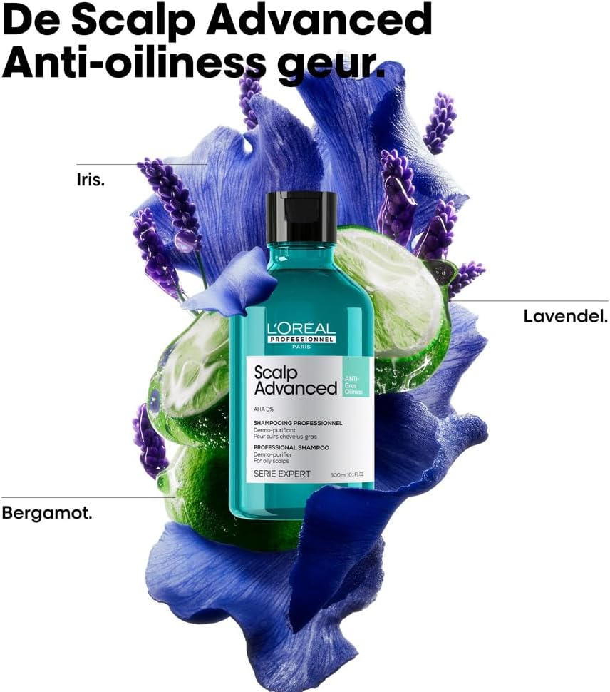 L’Oréal Professionnel, Reinigende en Dermo-Zuiverende Shampoo, Voor een Vette Hoofdhuid, Zuivert de Hoofdhuid en Haarvezel, Scalp Advanced, 500ml