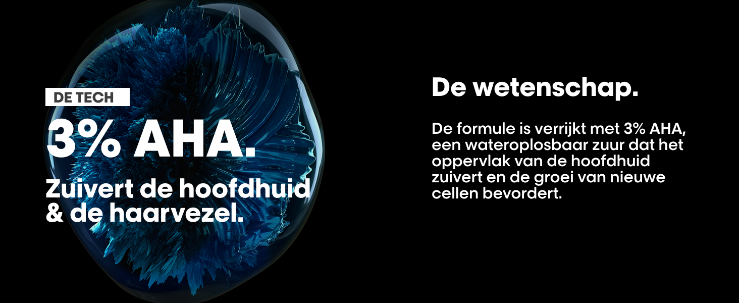 AHA wordt gewonnen uit fruit en helpt het oppervlak van de hoofdhuid te reinigen, zodat nieuwe huidcellen zich kunnen vormen. Klei werkt als een zachte scrub en helpt vuil, talg en zweet van het huidoppervlak te verwijderen.