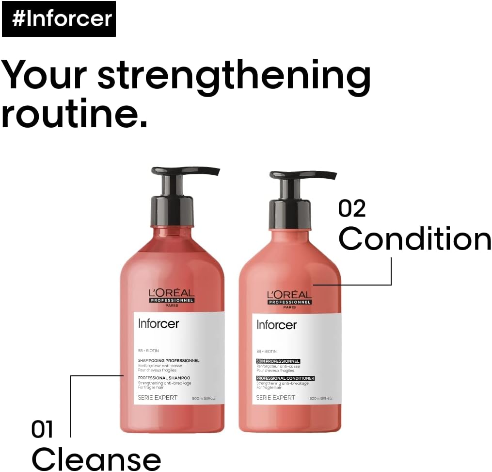 L’Oréal Professionnel, Verstevigende Conditioner, Voor Droog en Breekbaar Haar, Beschermt Tegen Haarbreuk en Maakt het Haar Zacht, Met Vitamine B6 en Biotine, Inforcer, 500ml