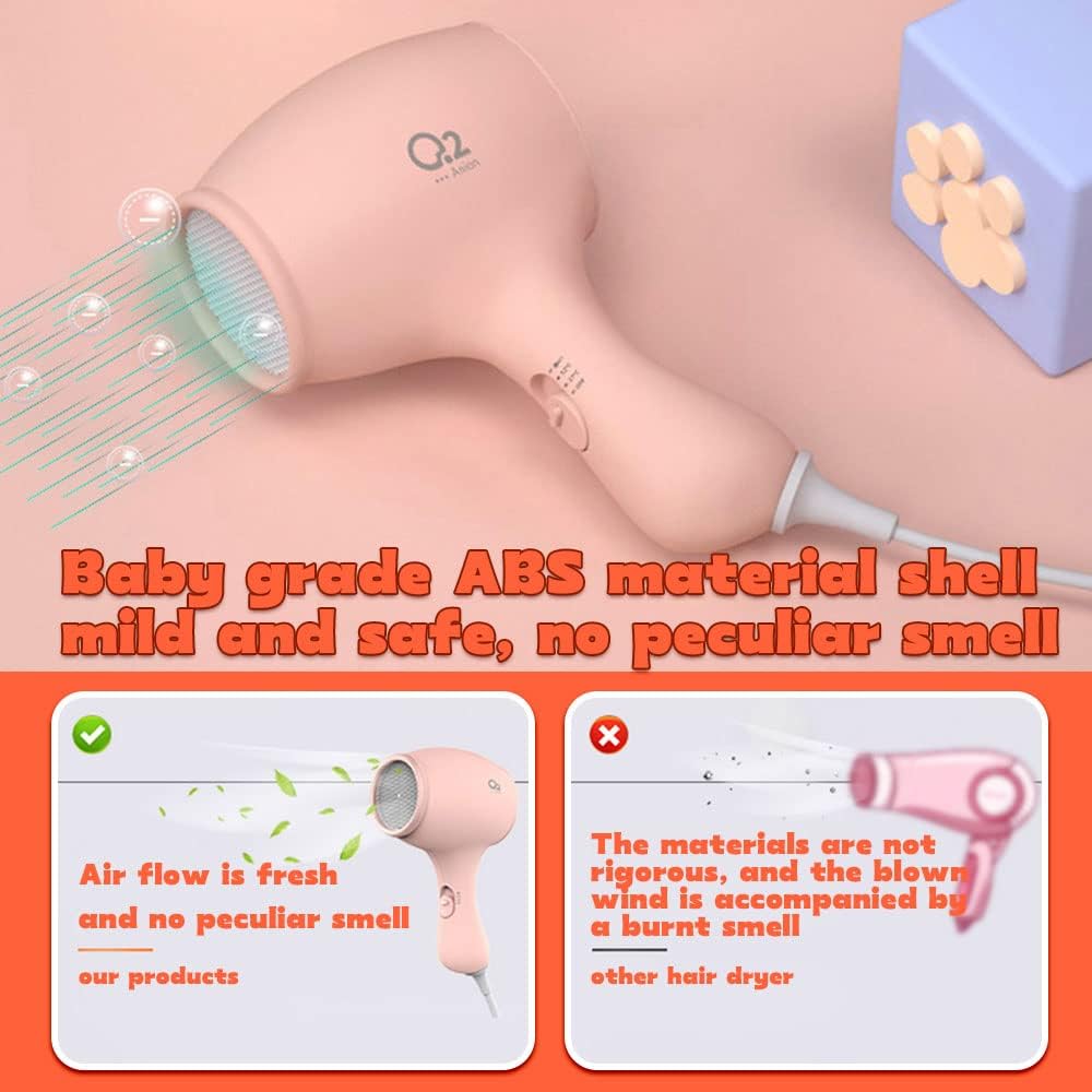 【Veiligheidsmateriaal】Anti-verbranding ontwerp met ABS-materiaal voor kinderen. gehydrateerd haar met meer glans en voor gelijkmatige warmteverdeling. Kinderföhn huidmodus met temperatuur lager dan 37 °C, geschikt voor droge babyhuid, zeg niet tegen uitslag.