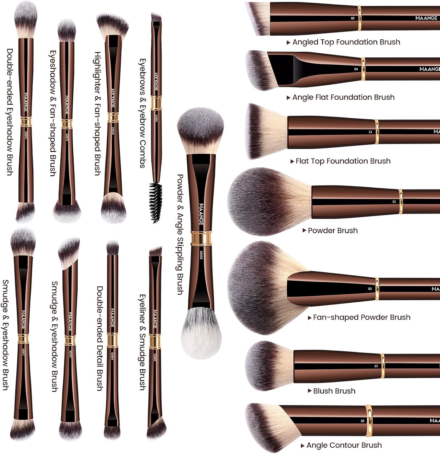 MAANGE 18 Pcs Makeup Brushes with Gift Box, Double-Sided Multi-Purpose Makeup Brush Set for Mixing Liquid Powder Concealer Cream Blush Buffe