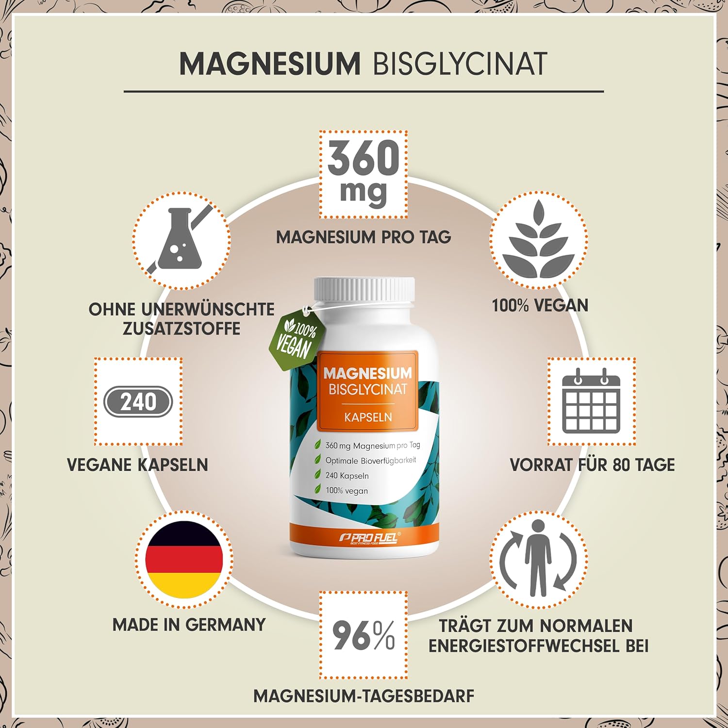 Magnesium Bisglycinaat capsules 240x – optimaal hoge dosis & biologisch beschikbaar – 360 mg magnesium per dag – laboratorium getest met certificaat – 100% veganistisch – voorraad voor 80 dagen