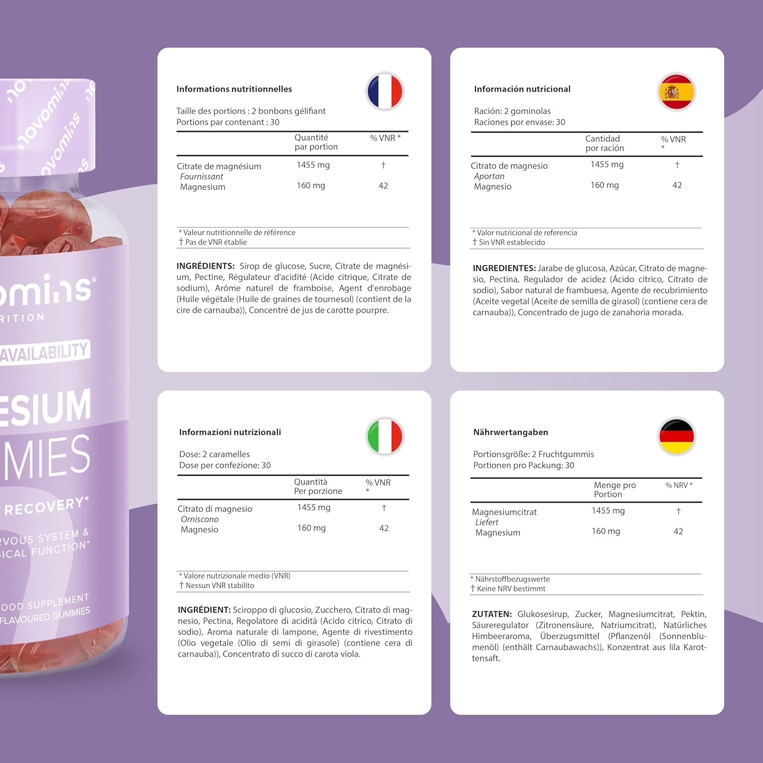 WAAROM NOVOMIN KAUWGOMIES CONSUMEREN? Onze gummies zijn wetenschappelijk ontwikkeld door ons onderzoeks- en ontwikkelingsteam om u het beste voedingssupplement met magnesium te bieden. Als u op zoek bent naar magnesium voor volwassenen en kinderen, zoek dan niet verder! Het wordt aanbevolen om magnesium te nemen tijdens fysieke inspanning. Dit zorgt voor een normale werking van de spieren en het zenuwstelsel (EFSA