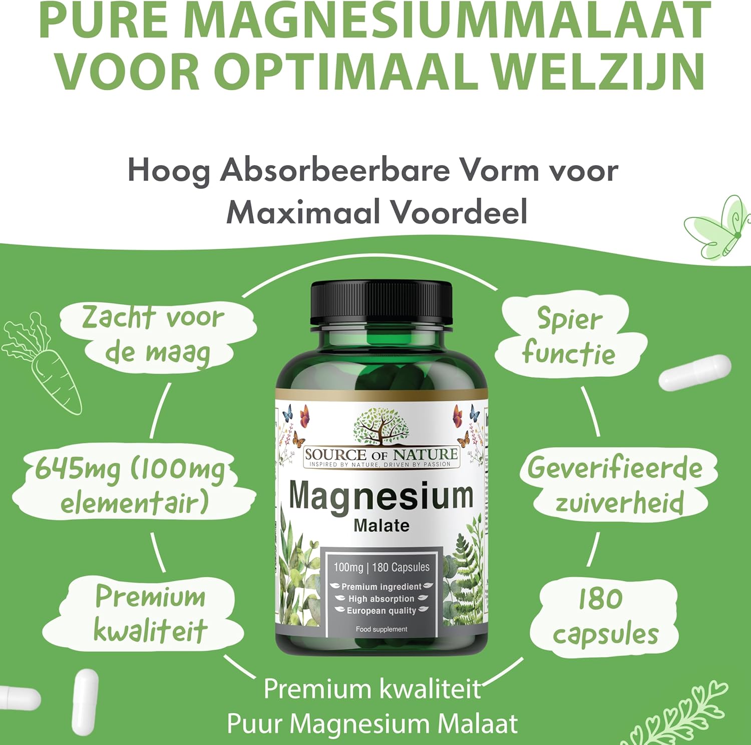 ✔ HOGE DOSERING – 180 CAPSULES, 2 MAANDEN VOORRAAD – Elke fles bevat 180 capsules met hoge sterkte, met 645mg magnesium malaat per capsule (100mg elementair magnesium). 2 maanden voorraad voor langdurige energie, spierherstel en algemeen welzijn.