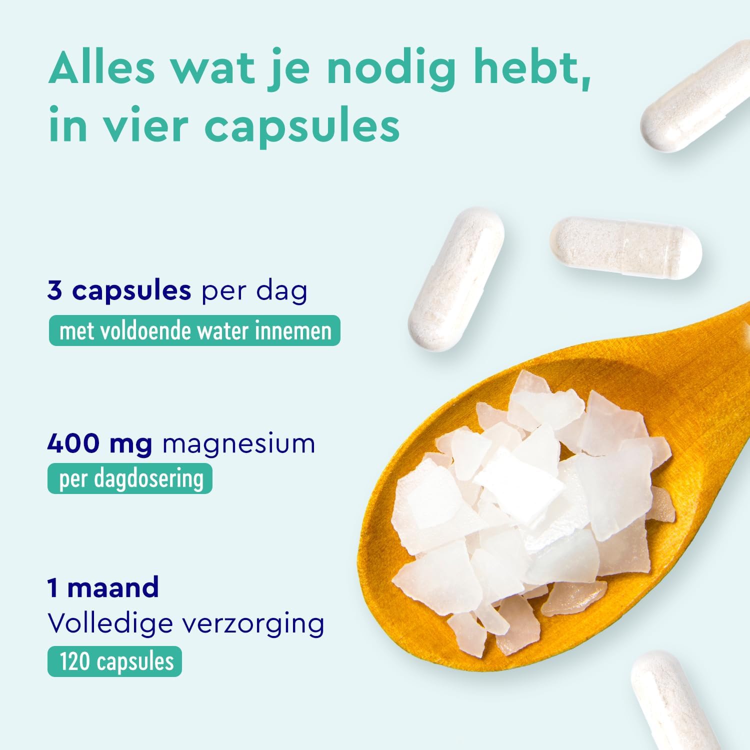 VOOR SPIEREN, ZENUWEN, BOTTEN EN TANDEN – Magnesium helpt vermoeidheid en moeheid te verminderen. Het ondersteunt de normale werking van het zenuwstelsel en draagt bij aan een normale eiwitsynthese. Daarnaast ondersteunt magnesium een normale spierfunctie en een normale energiestofwisseling. Magnesium helpt bij het behoud van normale botten en tanden.*