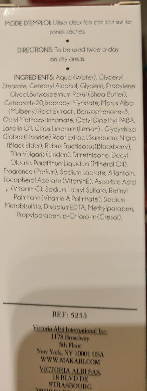 Al jaren hebben vrouwen op zoek naar hoogwaardige huidverzorgingsproducten die uitsluitend voor hun unieke behoeften zijn ontworpen. Ten slotte kan iedereen de heldere, gladde, gloeiende teint bereiken die ze altijd al hebben gedroomd. Speciaal geformuleerd voor droge tot normale huidtypes, is onze Intense Extreme Lightening crème verrijkt met hydraterende sheaboter, SPF 15 en vegeclairine, een natuurlijk afgeleid actief whitening middel. Breng dagelijks aan op gerichte donkere vlekken op het gezicht of lichaam en kijk als hyperpigmentatie, acne gebreken, littekens en ouderdomsvlekken vervagen, voor een frisse, jeugdige, perfecte look. Deze verjongende crème is ook ideaal voor het verzachten van de huid en het gladmaken van fijne lijntjes en rimpels. Gebruik routinematig met Makari’s complete lijn van Naturalle whitening producten om je ideale schaduw te bereiken
