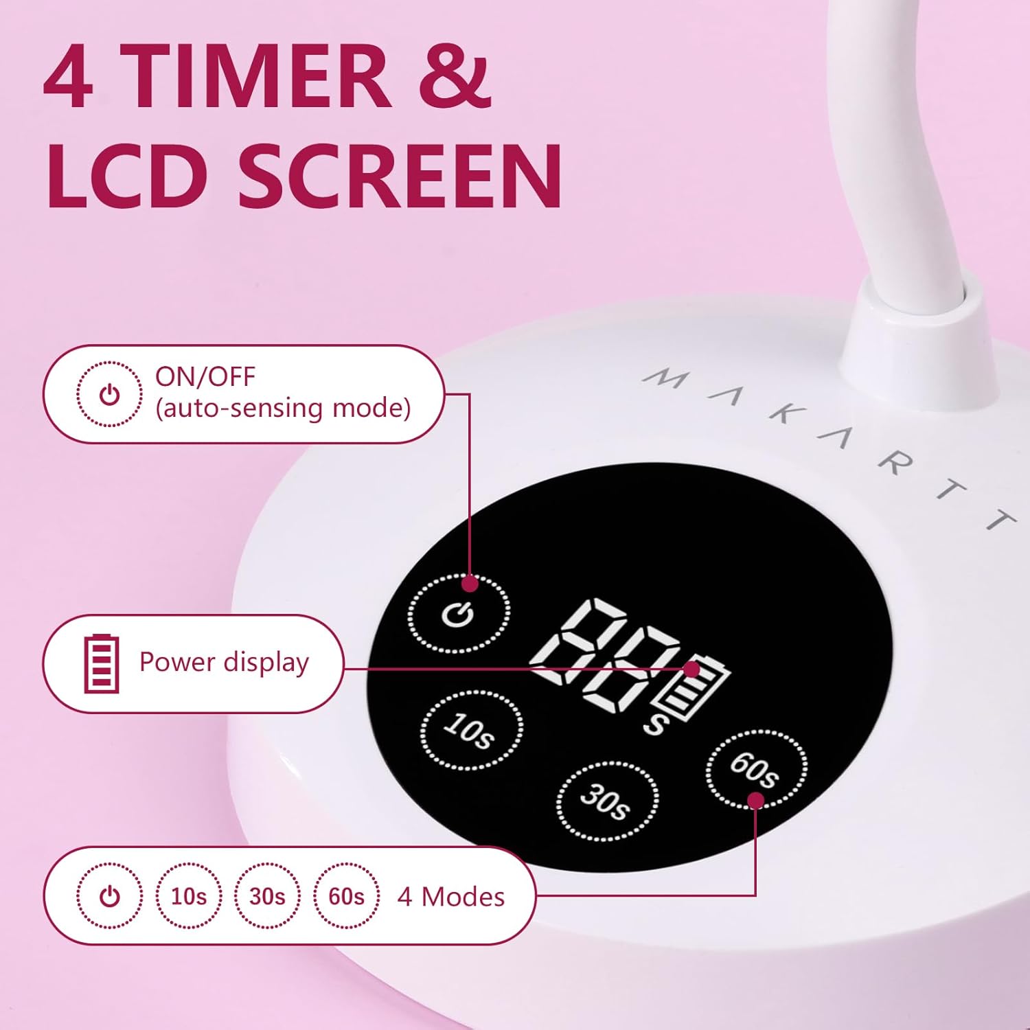 Makartt Oplaadbare uv-nagellamp, led-gelnagellampen, draadloze 10W nageldroger, uv-lampen voor gelnagels, gelnagellakdroger met automatische sensor, 4 timers, snelle nageluithardende lampen