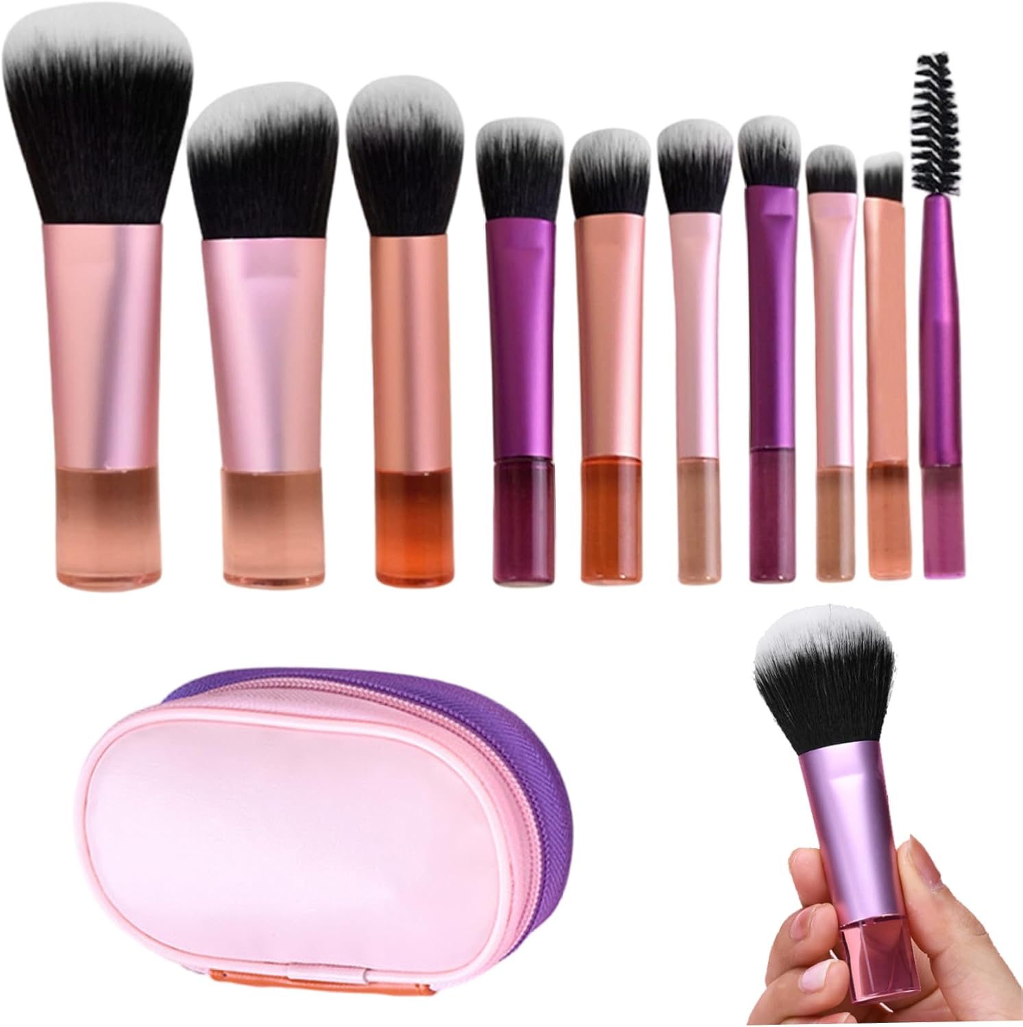 Make Up Borstels Set (10 Stks), Hoogtepunt Blusher Concealers Eye Travel Make-up Borstels met Pouch, Synthetische Vezel Make-up Gereedschap Kit voor Vrouwen, Mini Reizen Borstel Set |