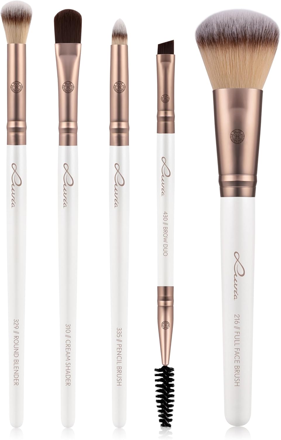 Make-up Kwastenset Luvia, Daily Selection Set, Poeder- en Ooogkwasten, 5 veganistische cosmetische Kwasten, Make-up Kwasten