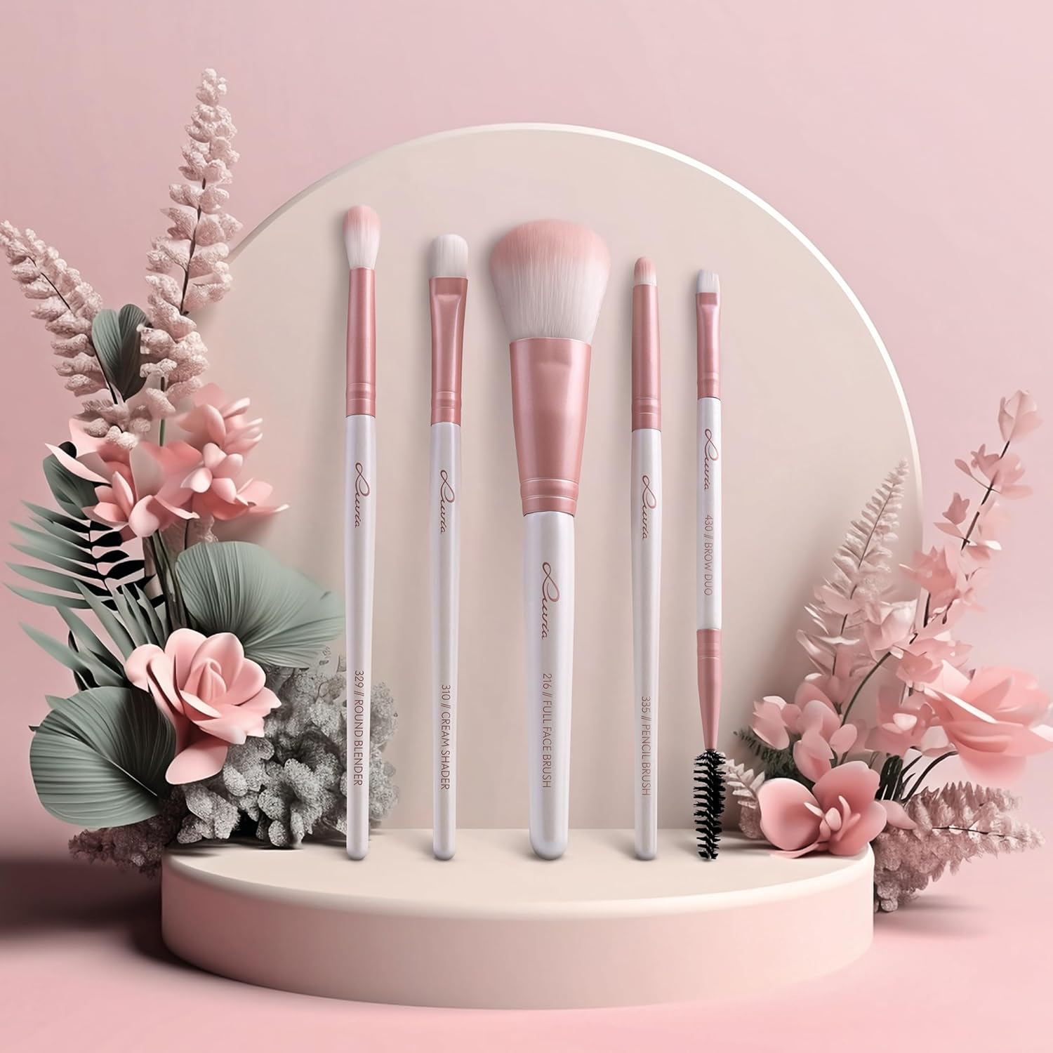 Make-up Kwastenset Luvia, Daily Selection Set, Poeder- en Ooogkwasten, 5 veganistische cosmetische Kwasten, Make-up Kwasten