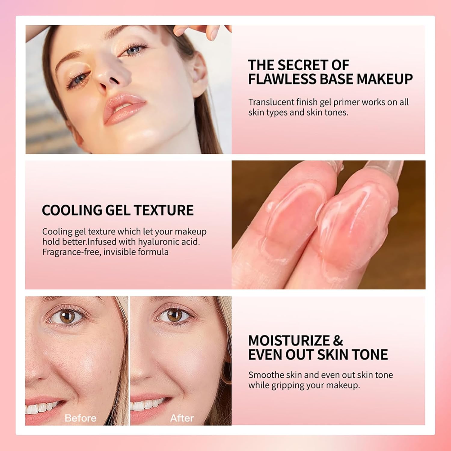 Langdurige make-up: de gezichtsprimer kan als verjaardagscadeau voor vrienden of familie worden gebruikt. Geschikt voor verschillende gelegenheden, zoals dates, feesten, bruiloften, bars, dansfeesten, camping, kantoor, school of dagelijkse make-up