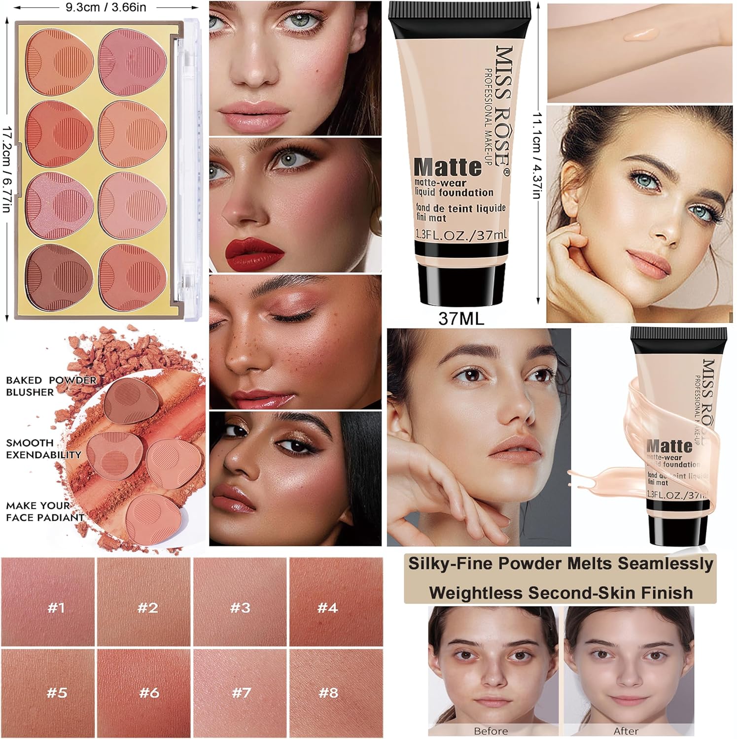 The set comes with everything it is well packaged and great quality it is perfect as a starter pack. It includes eye shadows of every colour, lip glosses, blush, mascara and makeup fixer and more ……This is a great gift for someone or to top up your own makeup selection.