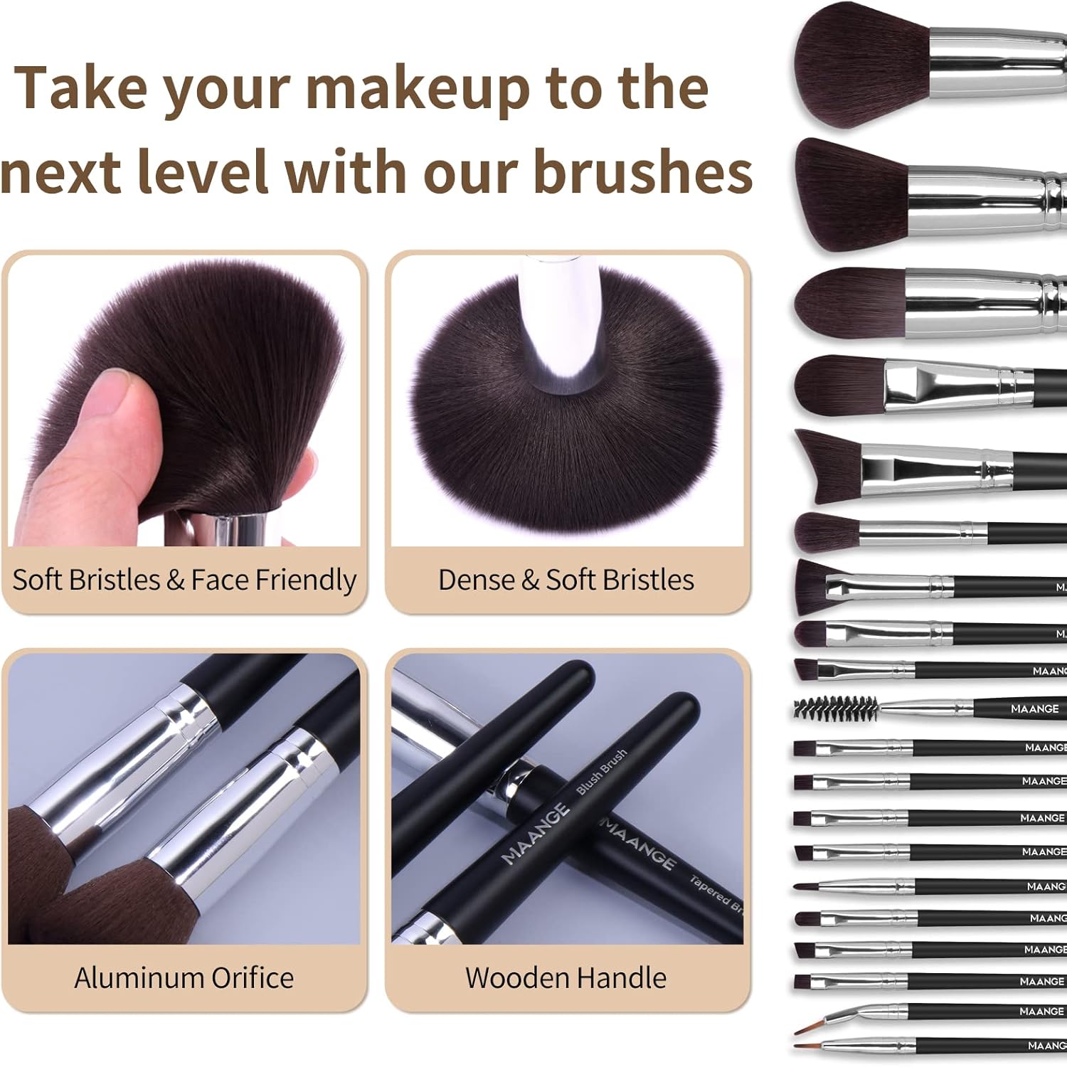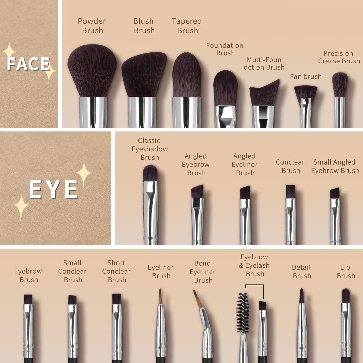 This is an excellent makeup brush set. Has every shape and size of makeup brushes you can ask for. These feel great to work with and very easy to use. They’re very well made and high quality. Highly recommended!