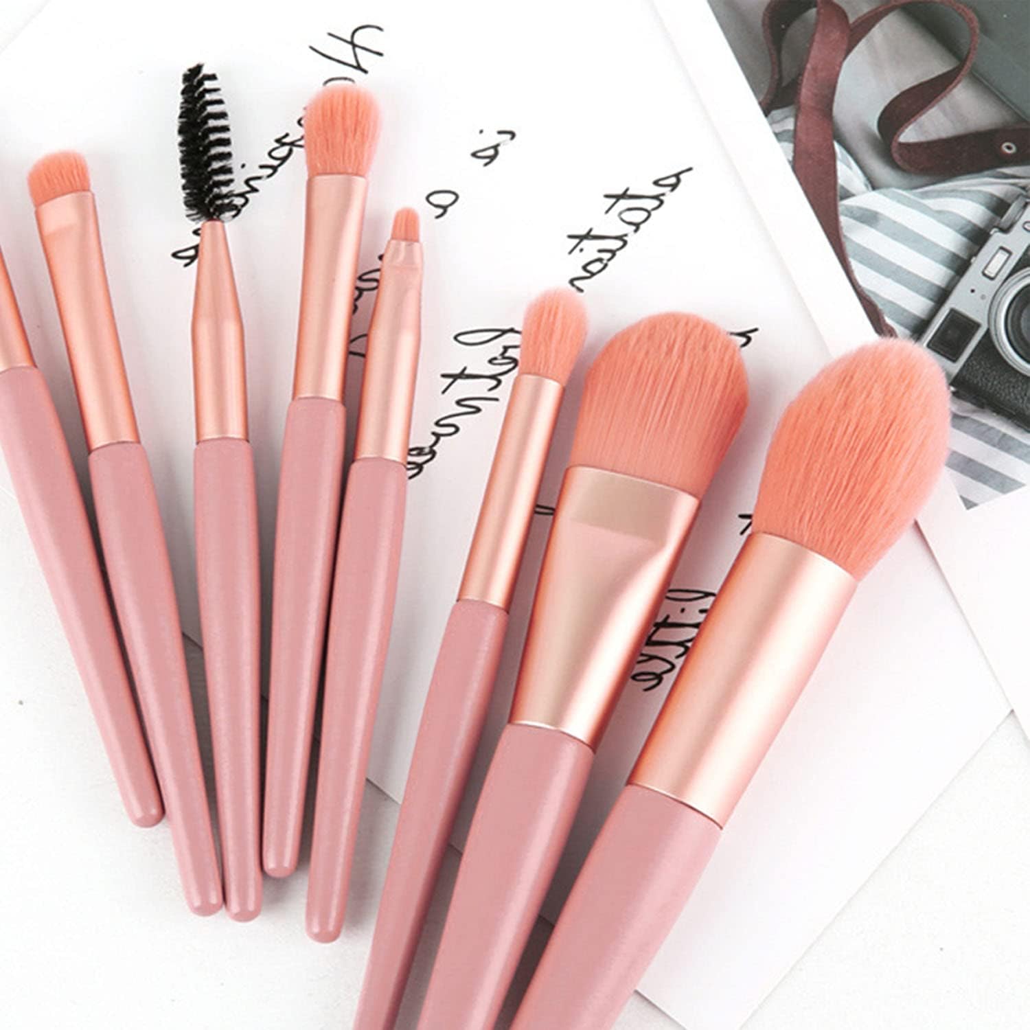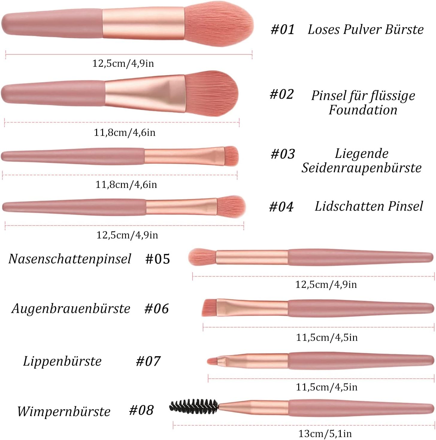 Make-upkwasten, make-upkwastenset met opbergzak, foundationkwast, oogschaduwkwast, 8 penselen, roze