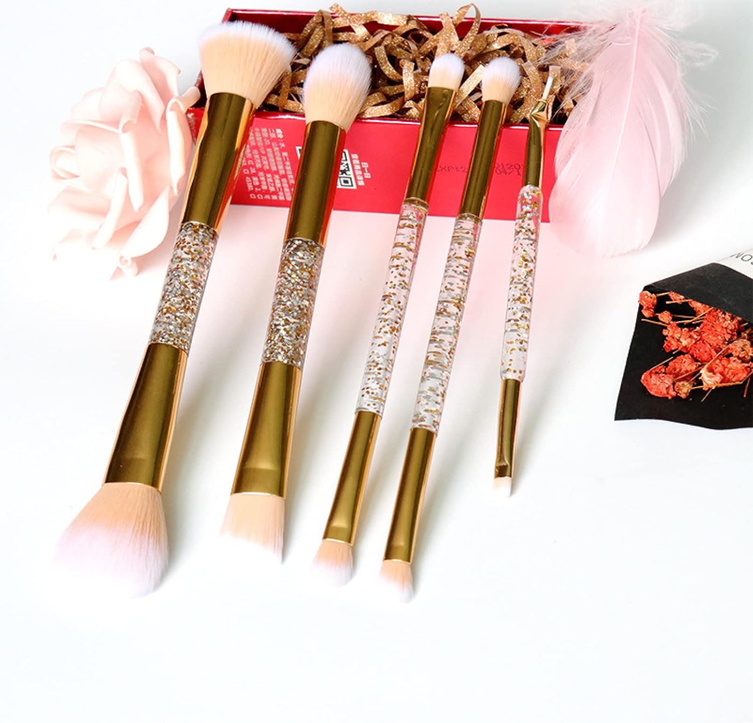 Makeup Brush Beauty Brush Makeup Brushes Eye Makeup Brushes Plastic Double Headed Makeup Brush Set, Loose Powder Brush, Foundation and Eyeliner Full Set Makeup Brushes,Gold