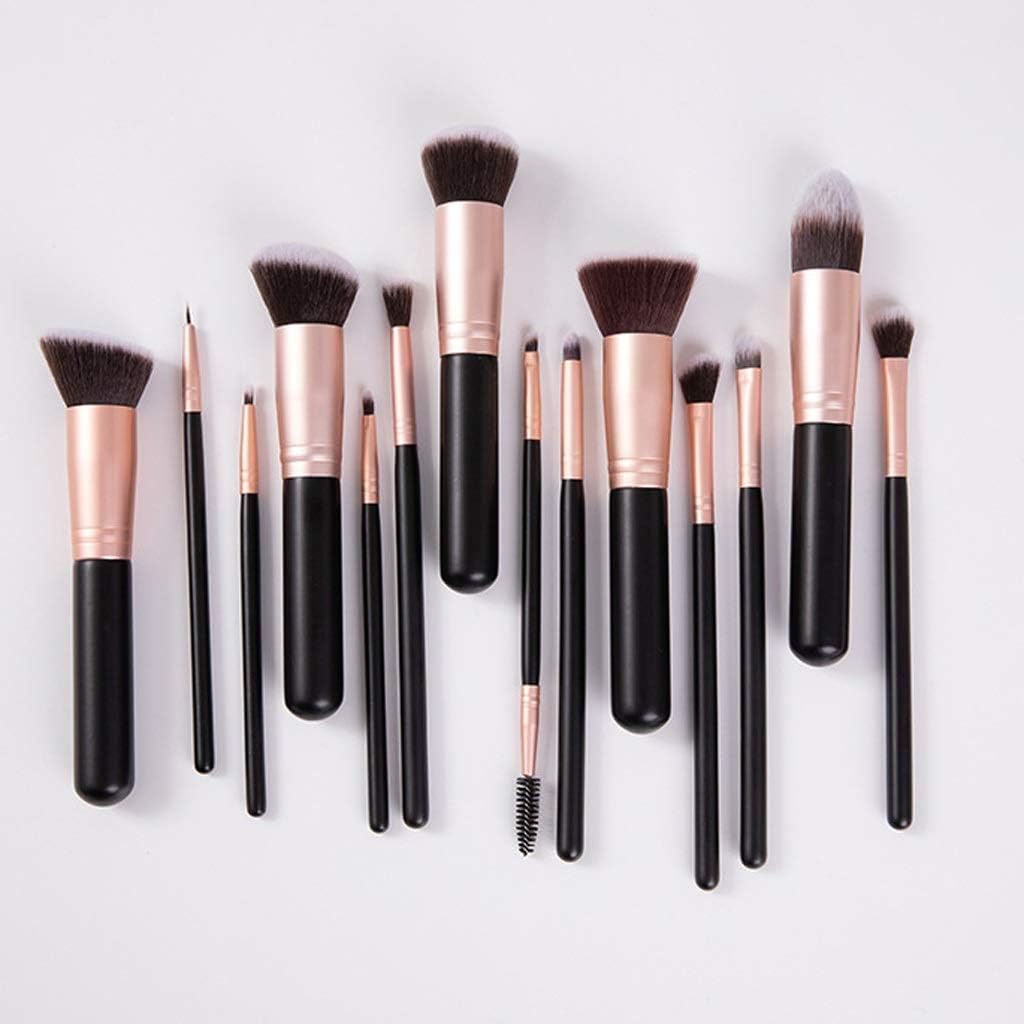 SOFT & DENSE & DURABLE: These Brush Bristles are fine, soft and dense which makes the application nicer; The denseness provides a much better even application. Not easy shedding , and are completely safe for washing and cleaning them. Cruelty-Free, Soft Synthetic Fiber: Soft and silky to touch, the brushes are dense and shaped well. The brushes made of premium synthetic fiber materials provide an incredible touch and feel. Chic Rose Gold Design: The decadent gold ferrule in combination with the classic black handle make for a chic and ideal gift For a Flawless Complexion: Apply powders, creams, and liquids without the brush soaking up all the product – for a uniform complexion without any wasting makeup BEST GIFT for WOMEN: These Brush set are packaged in high-grade drawer gift box, Luxury black gold color is a perfect gift for both girls daily use and professional use. 14-piece makeup brush set Incredibly soft, silky & durable bristles Perfectly shaped brush heads Go-to set for every look Apply liquid & powder flawlessly Incredibly easy to clean How to Clean Brushes 1. Place brushes in warm water. 2. Apply a small amount of gentle shampoo to brushes and work into a light lather. 3. Rinse brushes thoroughly under running water. You will notice that the water leaving the brush is tinted from protective coating. 4. Continuous rinsing until no color leaves the brush. 5. Reshape the bristles to their original form and allow it to air-dry.