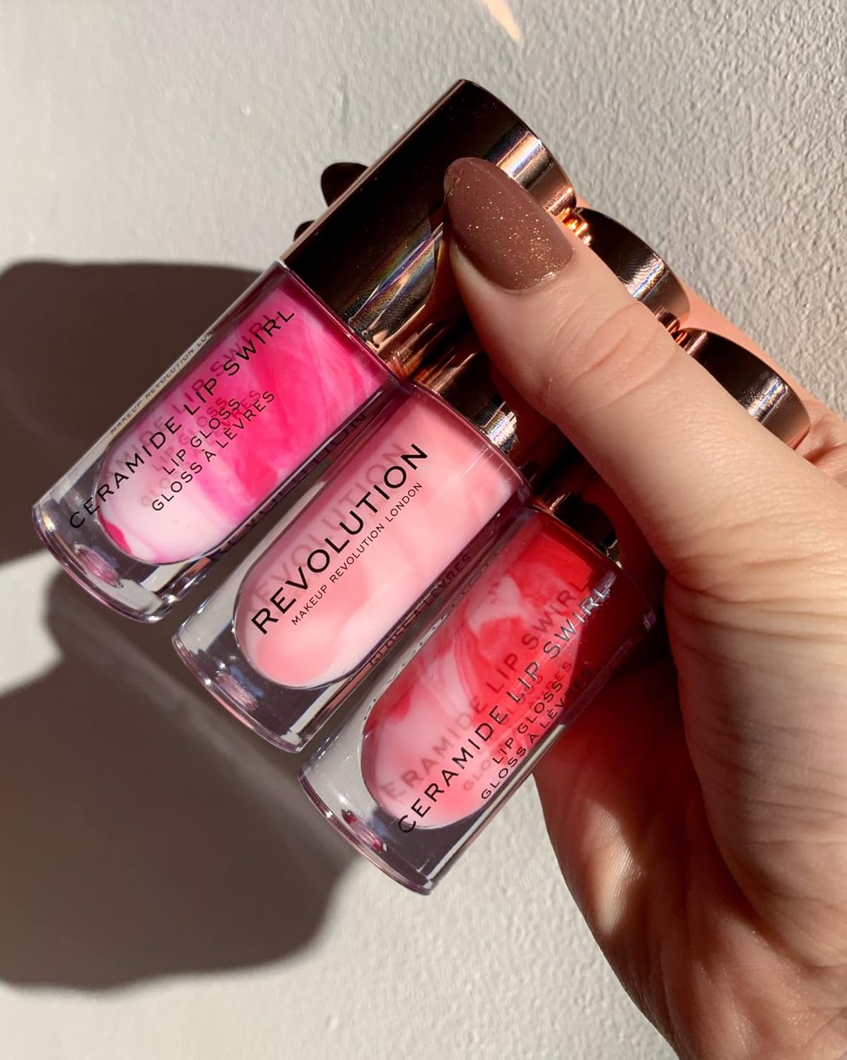 Krijg die glans! Verwen je lippen met deze hoogglanzende lipgloss. De Revolution Lip Swirl Ceramide Gloss geeft je lippen een glanzende en gehydrateerde uitstraling zonder plakkerig gevoel Elke tint geeft je een zachte en natuurlijke tint terwijl hij is gevuld met hydraterende ceramiden die het vocht van je lippen behouden en ze een ijzige uitstraling geven. Deze producten zijn niet alleen SUPER glanzend en hydraterend, maar ze hebben ook een luxe formule met marmereffect om je een fris gevoel te geven voor een kleine prijs! Verkrijgbaar in: Cherry Mauve – een diep paarse tint. Bitten Red – een klassieke rode tint Berry Pink – een levendige roze tint. Pure Gloss Clear – een Sweet Soft Pink transparante lipgloss – een lichtroze tint Vegan & Cruelty Free