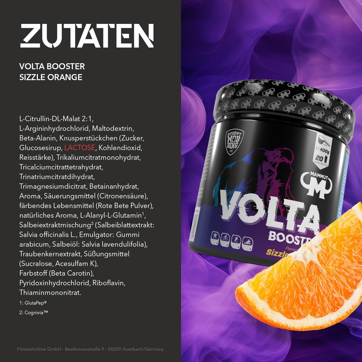 Mammut Nutrition Volta Pre Workout Booster – 400 g Sizzle Orange – met L-citrulline, L-arginine & bèta-alanine – zonder cafeïne – met Glutapep® & Cognivia® – geoptimaliseerd voor je training