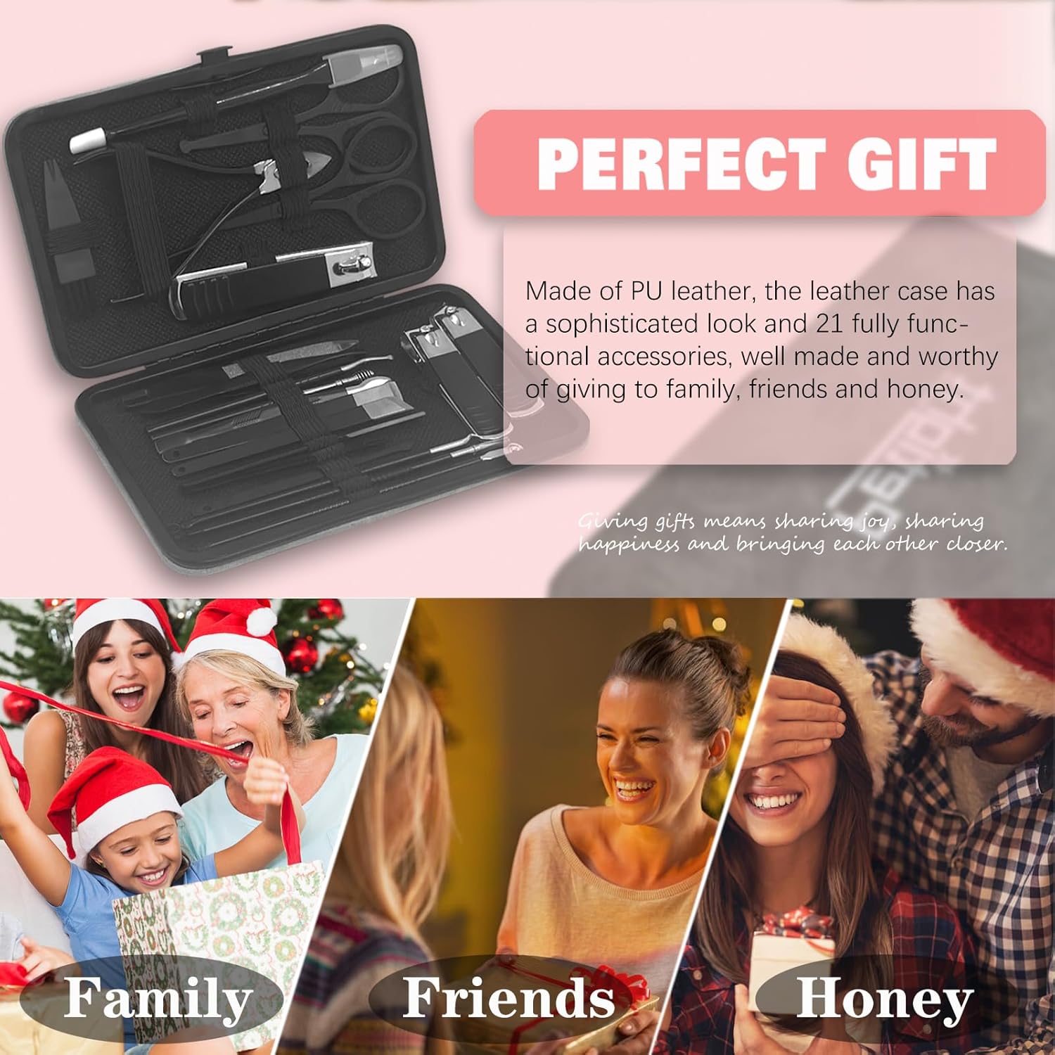 Manicure Set 21 Stuks Professionele Pedicure Kit Nail Clippers Set Roestvrij Staal Care Tools Grooming Kit Met Travel Case Cuticle Remover Teen Teennagel Cutter Set Voor Dikke Nagels Mannen Vrouwen