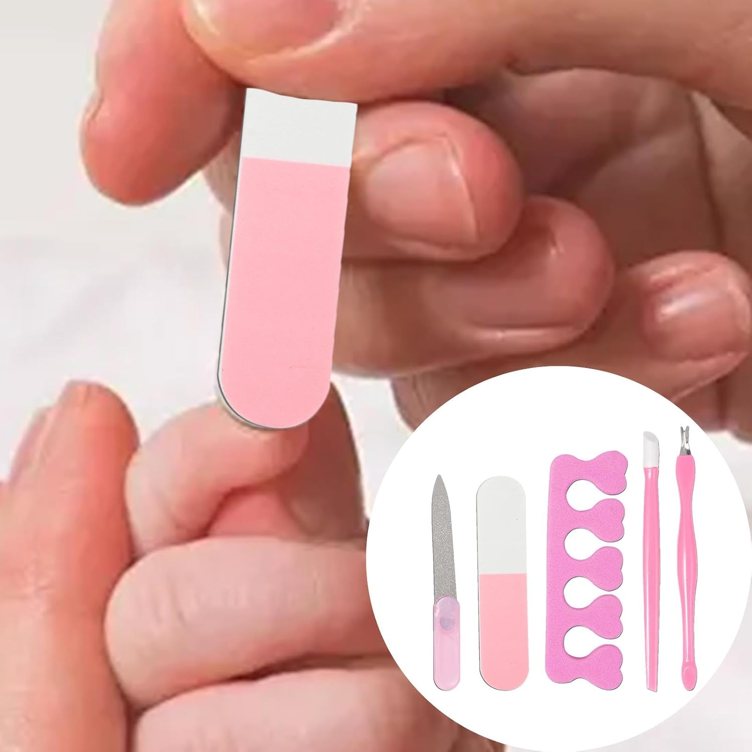 ∞Doe het goed in de keuze van manicures: vakkundig vervaardigd om een praktische manicure-ervaring te bieden, polijst deze 5-delige kit niet alleen nagels tot in de perfectie, maar verwijdert ook efficiënt dode huid, naast andere functies.