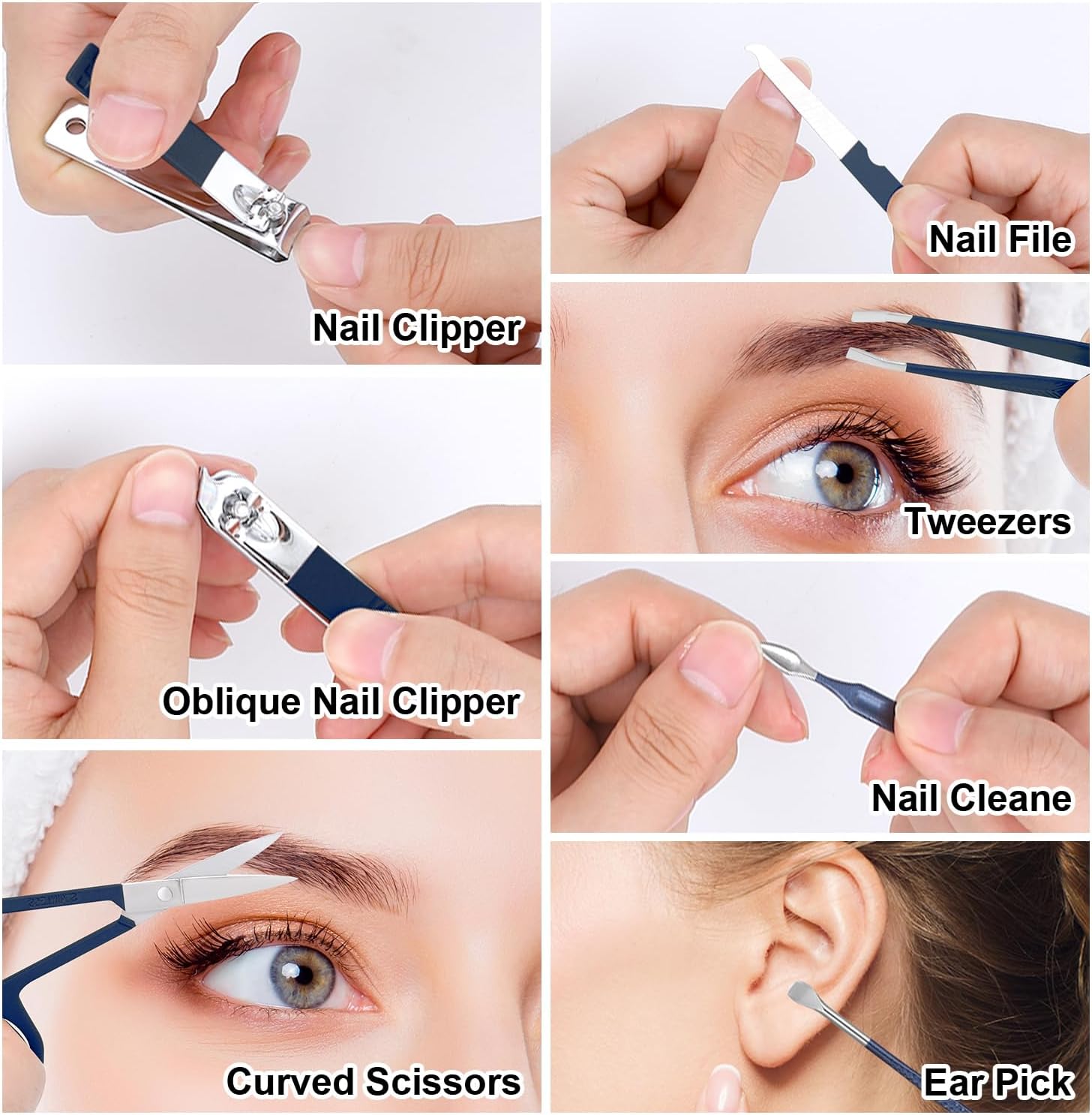 Praktische nagelverzorgingsset: deze draagbare reismanicureset bevat verzorgingssets voor vingernagels en teennagels, 7 hulpmiddelen voor handverzorging, voetverzorging en gezichtsverzorgingsgereedschappen. Kan voldoen aan je basisverzorgings- en trimbehoeften, erg handig.