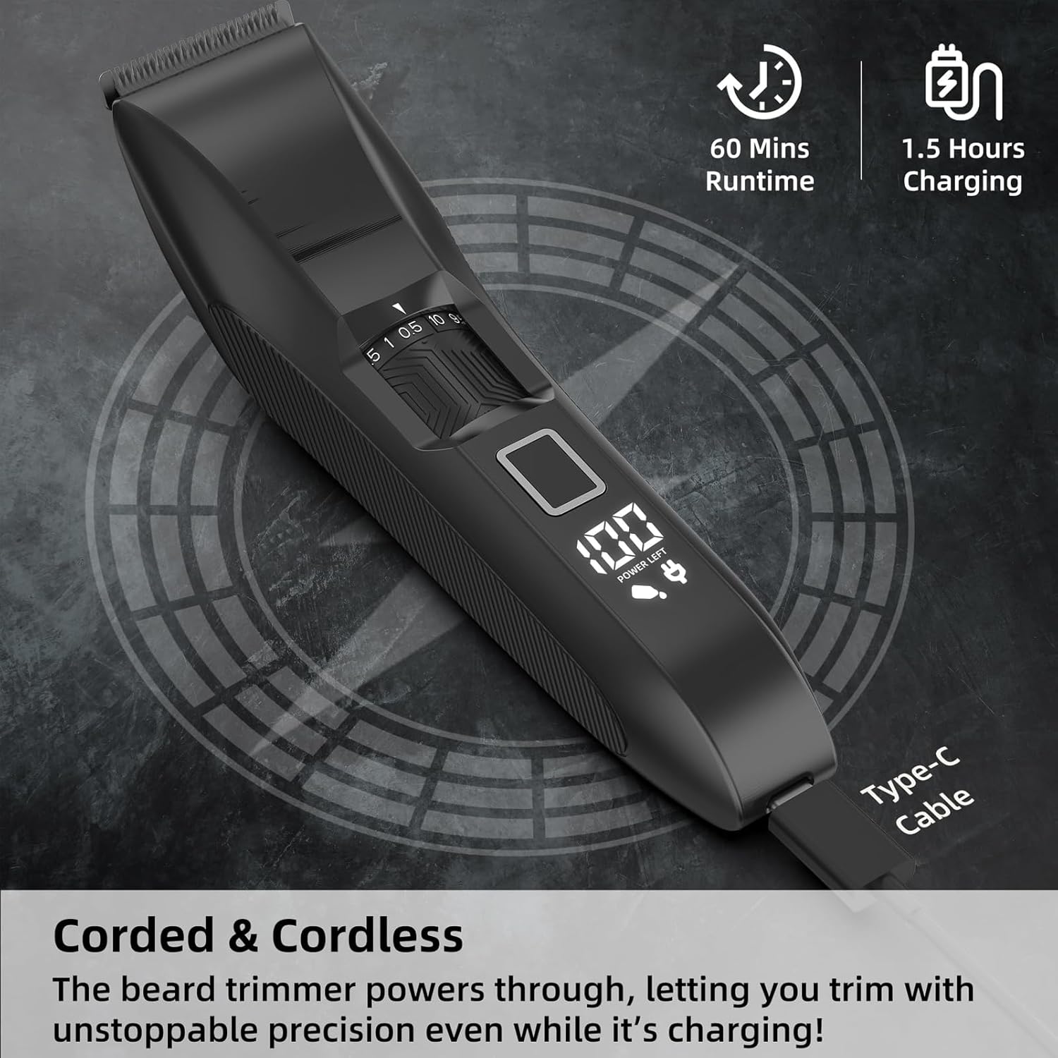 My husband uses this beard trimmer regularly, and it has noticeably improved his grooming. The adjustable settings let him pick his desired length, while the design ensures a close and comfortable trim without irritation. Its waterproof feature allows for use in the shower, and the LED display is both helpful and straightforward. It’s a dependable tool for keeping his facial hair in check.