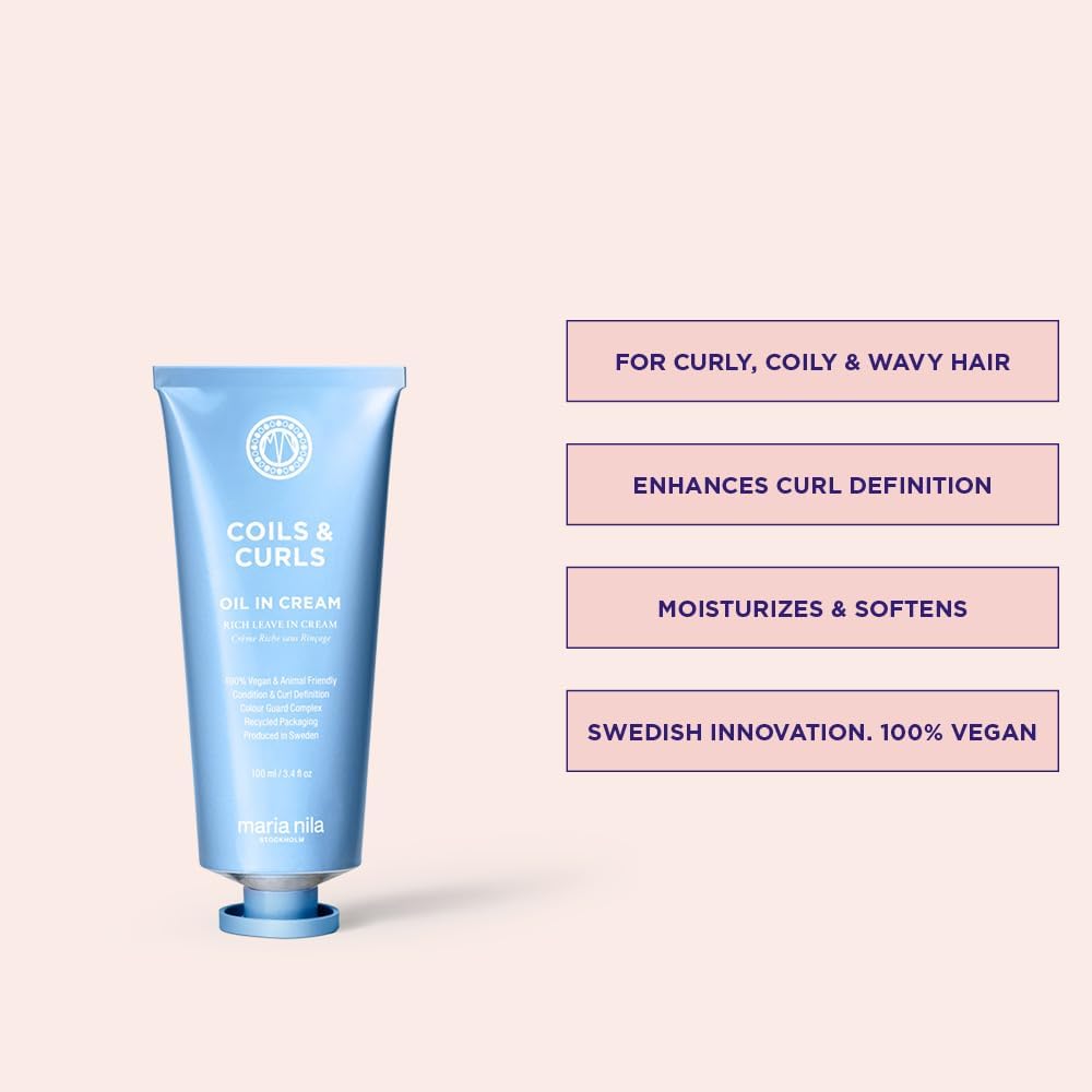 Maria Nila Coils & Curls Oil-In-Cream, 100 ml, voor krullend en golvend haar, Jojoba-olie om gehydrateerd te blijven tijdens het wassen, Karitéboter voor krullenversteviging, 100% veganistisch