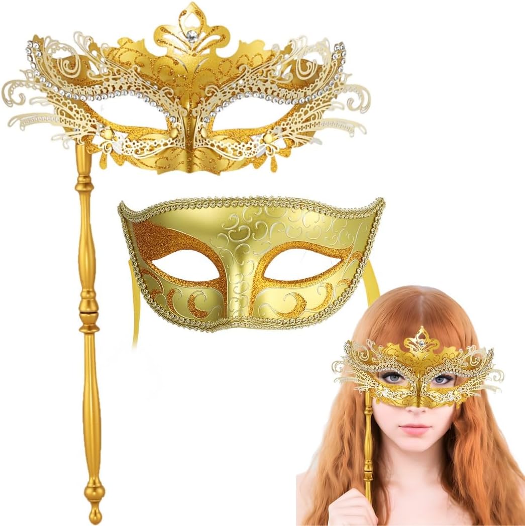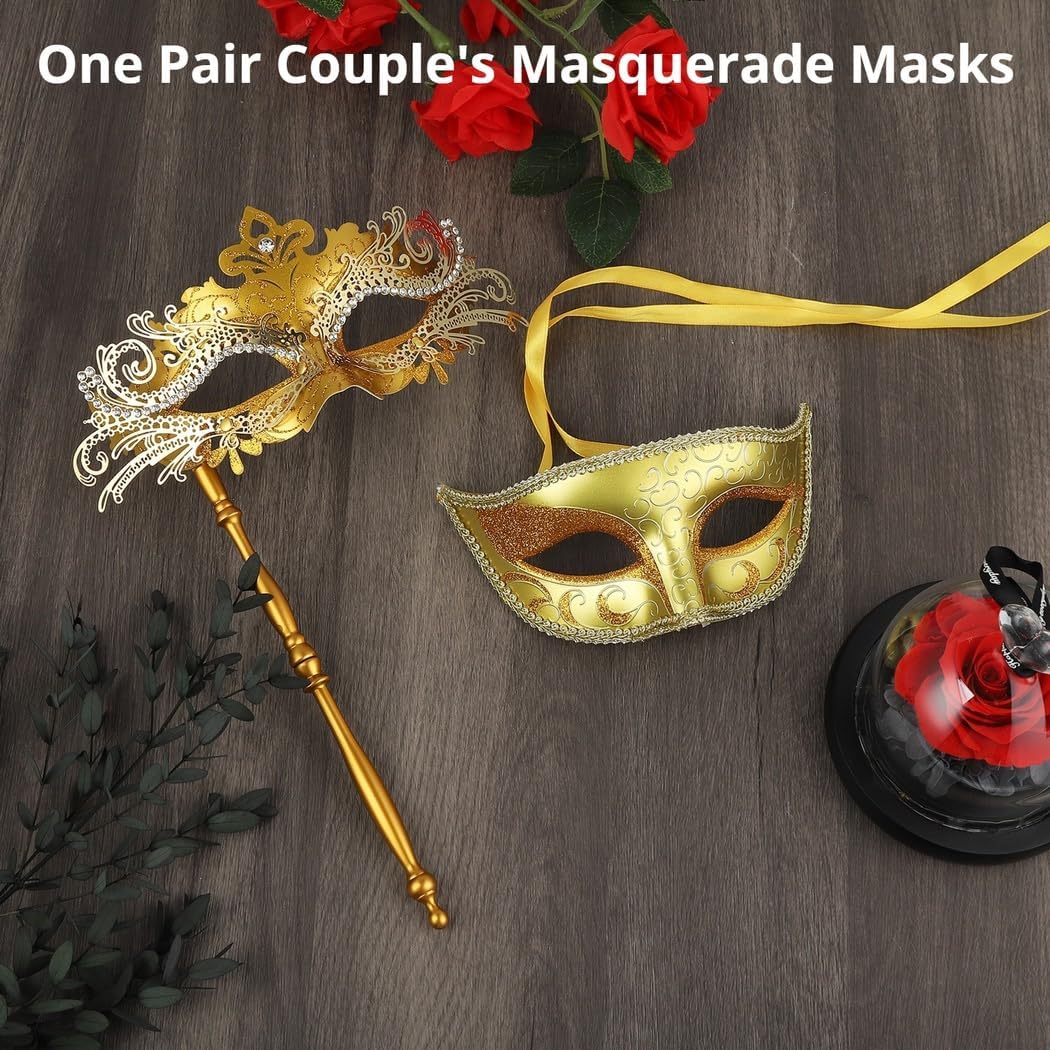 Maskerade set voor koppels, Venetiaanse maskers, Mardi Gras maskers, handmasker voor vrouwen en masker voor mannen, ideaal voor Halloween, cosplay, kostuumfeest