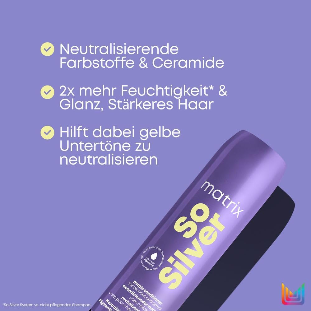 Matrix Gepigmenteerde conditioner voor blond en grijs haar, neutraliseert gele ondertinten, met ceramiden en kleurstoffen, So Silver gepigmenteerde conditioner, 1 x 300 ml