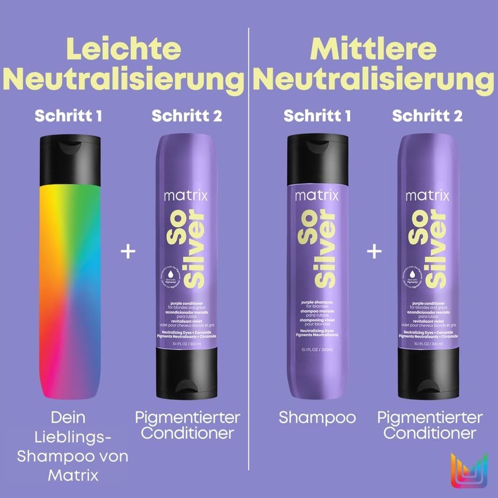 Der Zahn der Zeit nagt an meinen Haaren – sie werden grau. Allerdings bin ich nicht mehr gewillt meine Straßen-Köter-Blonden Haare zu färben. Durch die Sonne bleichen meine Haare extrem aus und es sah nicht mehr schön aus. Die Haare hatten einen Gelbstich.Zuerst war ich skeptisch aber letztendlich bin ich froh, dass ich mir die Spülung gekauft habe. Klar – es ist nicht gerade preiswert aber es funktioniert bei meinen Haaren. Der Gelbstich wird neutralisiert.Ich habe mir das Shampoo, die Spülung und die Haarkur gekauft. Eine perfekte Kombi. Ich brauche wirklich nur einen kleinen Klacks vom jeweiligen Produkt obwohl ich Schulterlange Haare mit Naturlocken habe. Somit ist das Preis-Leistungs-Verhältnis wieder in Ordnung. Sicherlich – die Produkte sind lila und es sieht auf den Fliesen dramatisch aus – falls etwas dahin spritzt aber ein kurzer Wasserstrahl drauf und schon ist es weg. Auch bei eventuellen Resten in den Handtüchern – einmal in die Waschmaschine und alles ist gut. Klare Kaufempfehlung von mir.