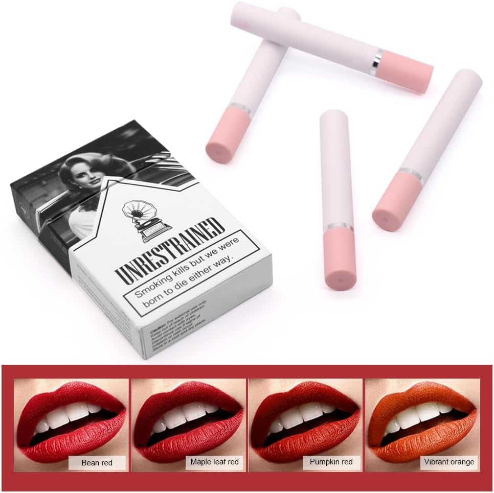 Onze lippenstift sigarettenset is verkrijgbaar in 4 verschillende kleuren, van licht tot donker, om aan de verschillende behoeften van meisjes te voldoen. De lippenstiften zijn niet klevend, niet vlekkend, duurzaam en waterbestendig, met een delicaat en compact ontwerp dat het gemakkelijk maakt om ze altijd en overal mee naartoe te nemen.