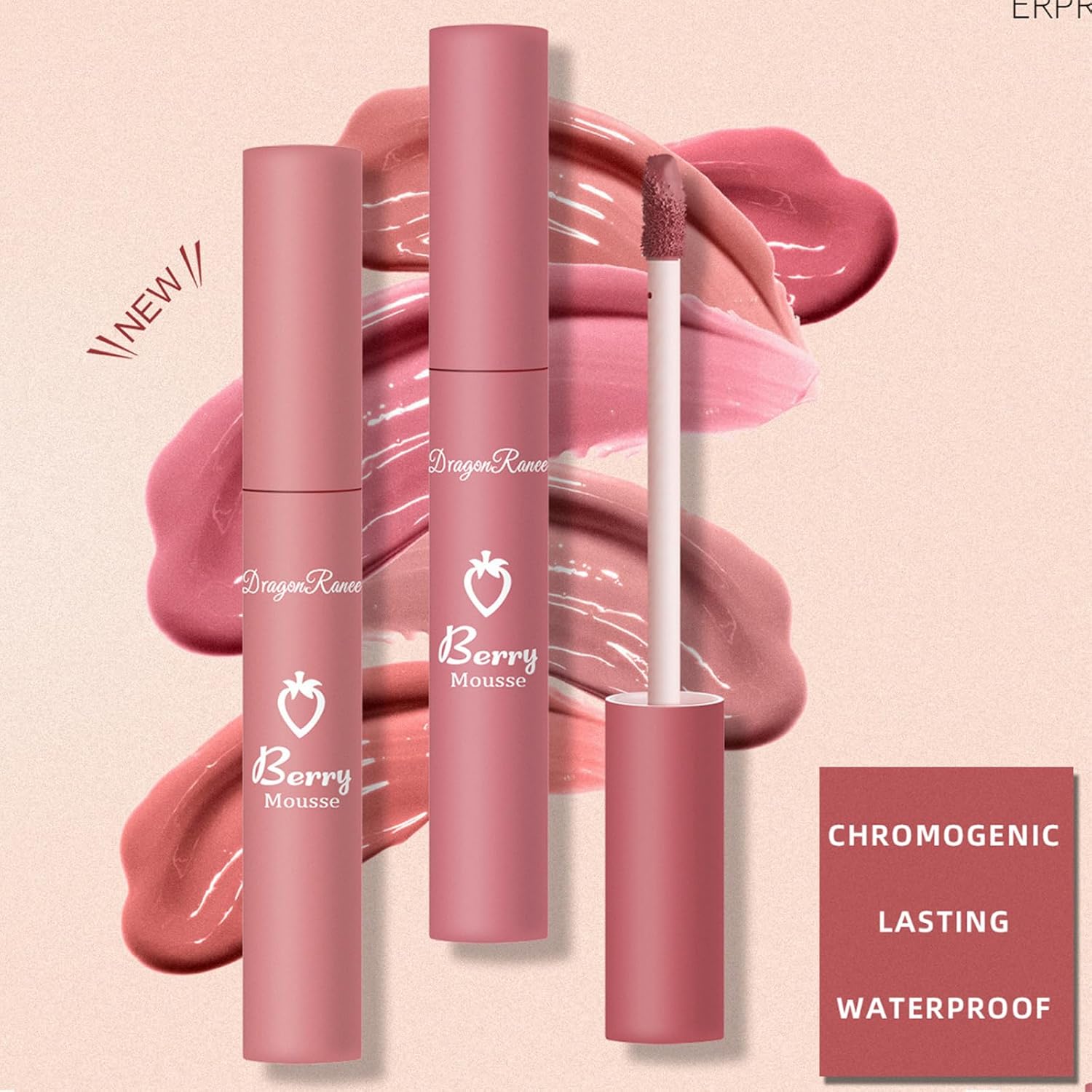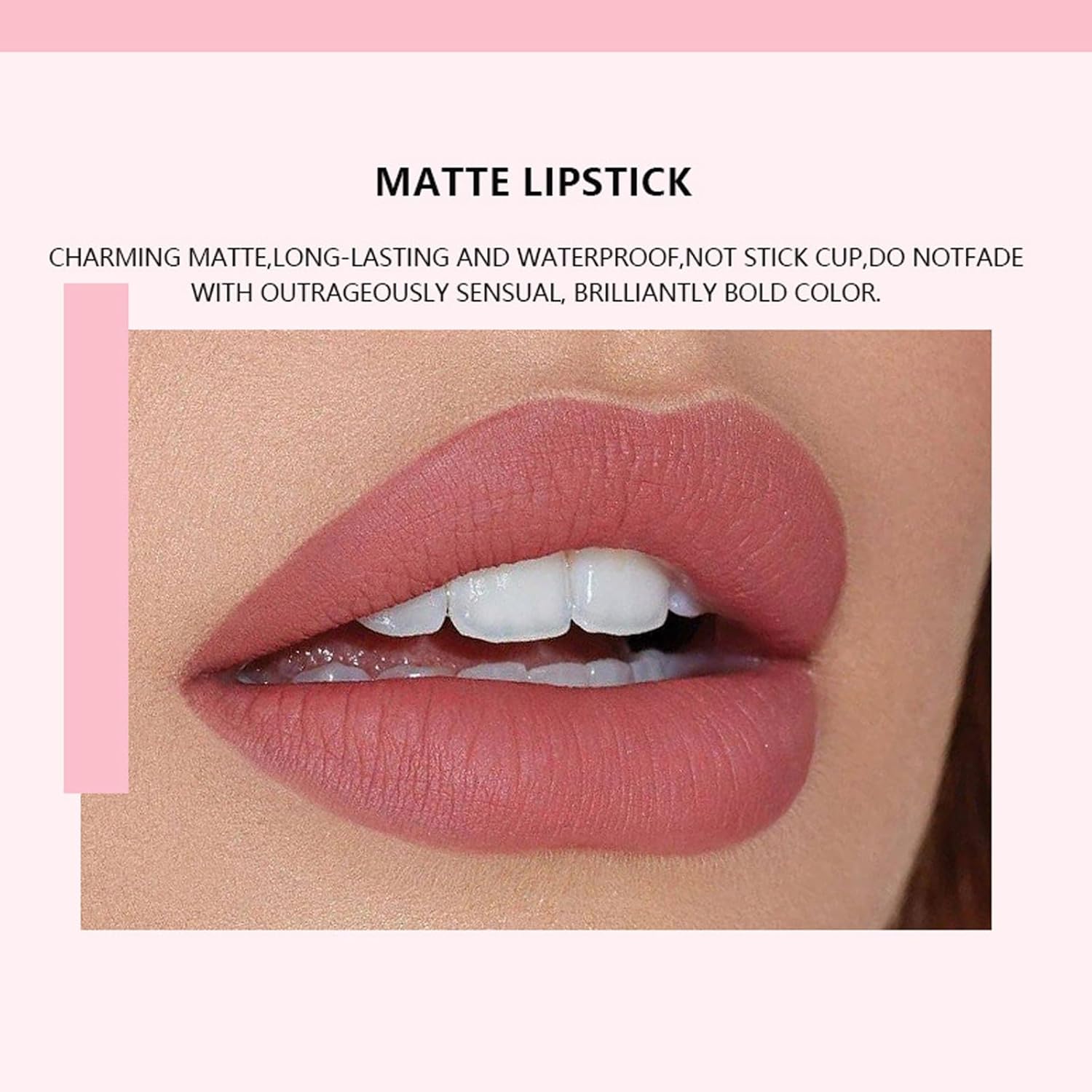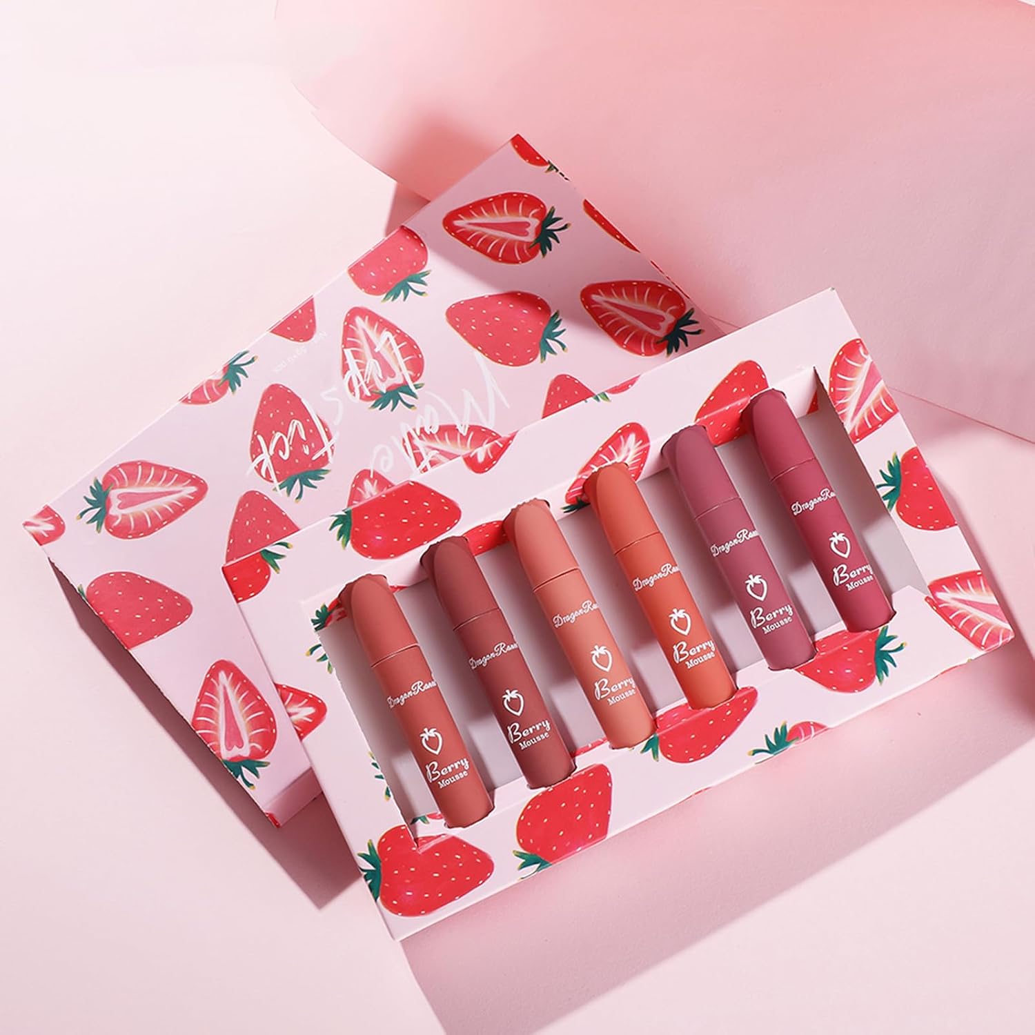 Matte Lipstick, Set of 6 Colours, Strawberries, Matte Lip Glosses, Set of 6 Colours, Waterproof Lips, Tone, Long-lasting Nude Tones, Liquid Lipstick, Set A