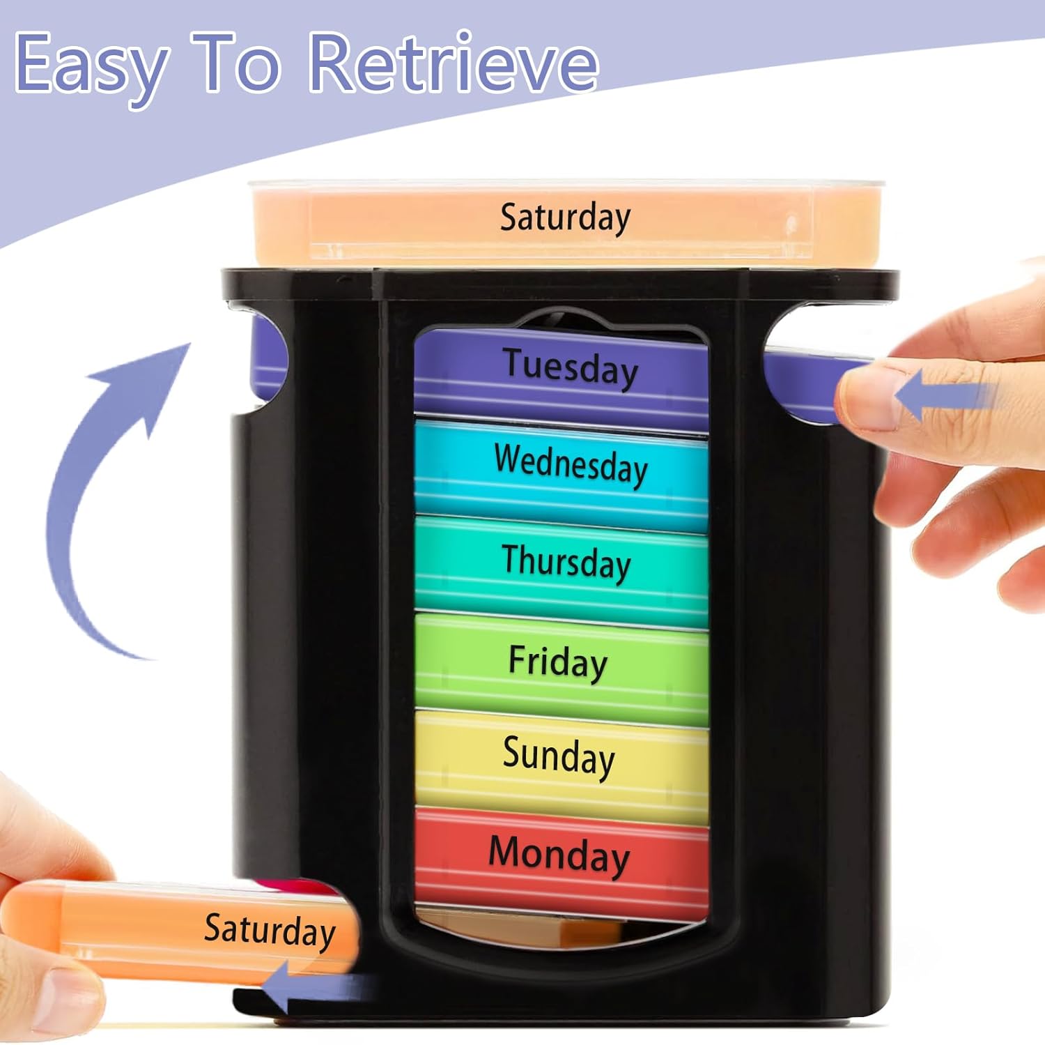 Mauepersu Pill Box met 7 dagen, 4 vakken, BPA-vrij, lade-pillen-organizer, reis-tablettenbox met vakken voor medicijnen, voedingssupplementen, vitaminen (zwart)