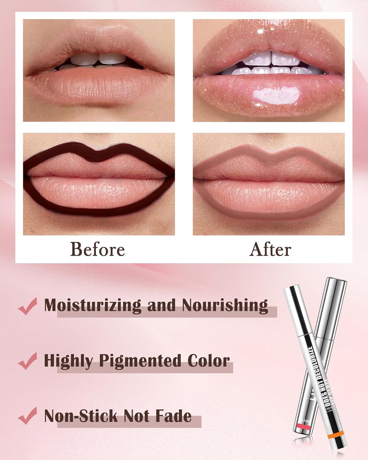 1. Lip Liner mit Lip Oil Gloss verleiht Ihren Lippen einen natürlichen und verführerischen Look und unterstreicht Ihren Lippenglamour.