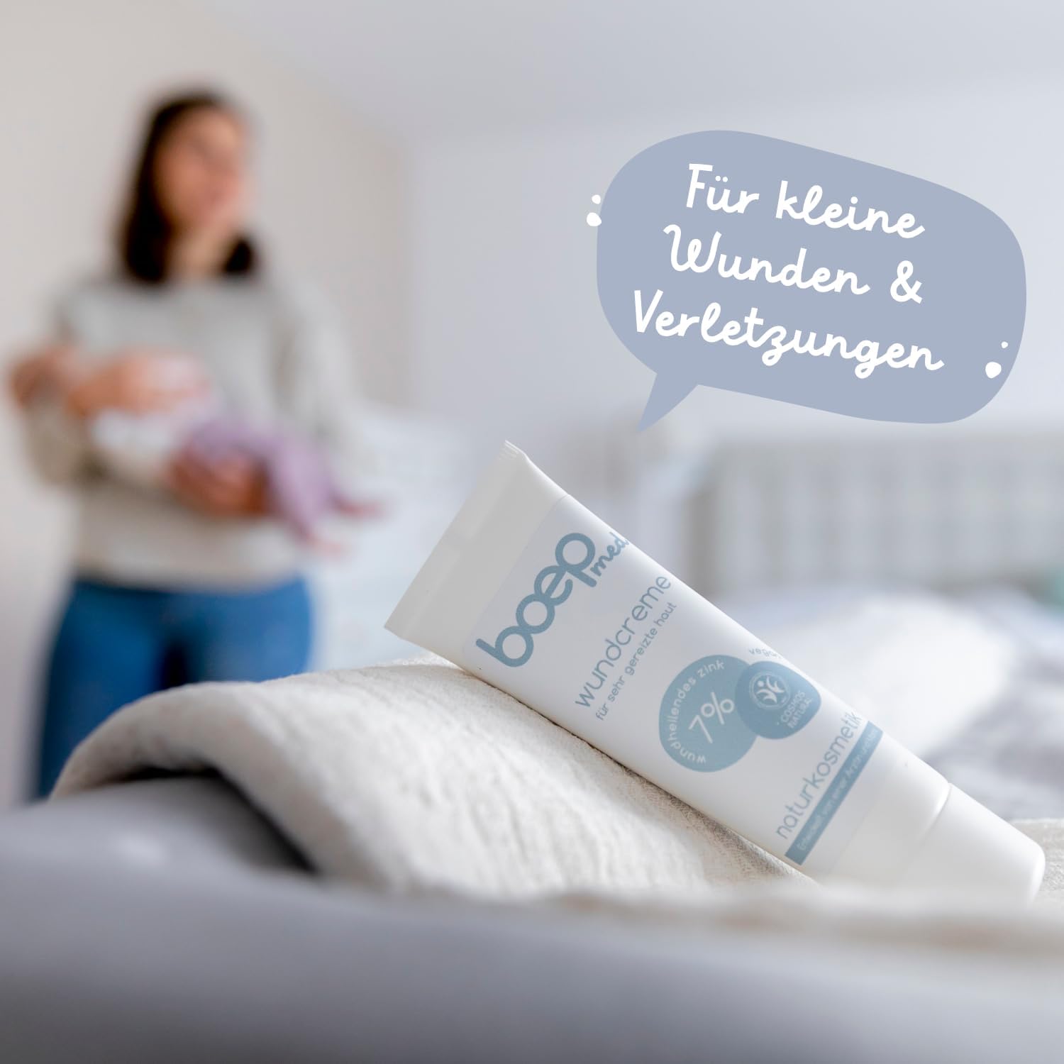 De wondcrème uit ons med assortiment ondersteunt de genezing van tranende, vochtige of jeukende wonden (bijv. in huidplooien) of licht ontstoken huidgebieden. Met zijn zuivere, gereduceerde formule is de wondcrème bijzonder geschikt voor baby’s, kinderen en volwassenen met een zeer gevoelige huid. De wondcrème is veganistisch en combineert bewezen medische ingrediënten met het beste uit de natuur. Met voedende amandelolie en 7% zinkoxide bevordert het wondgenezing en huidregeneratie op een effectieve en zachte manier. Het zink zorgt ervoor dat vocht aan de huid wordt gebonden en heeft ook een antibacteriële werking.