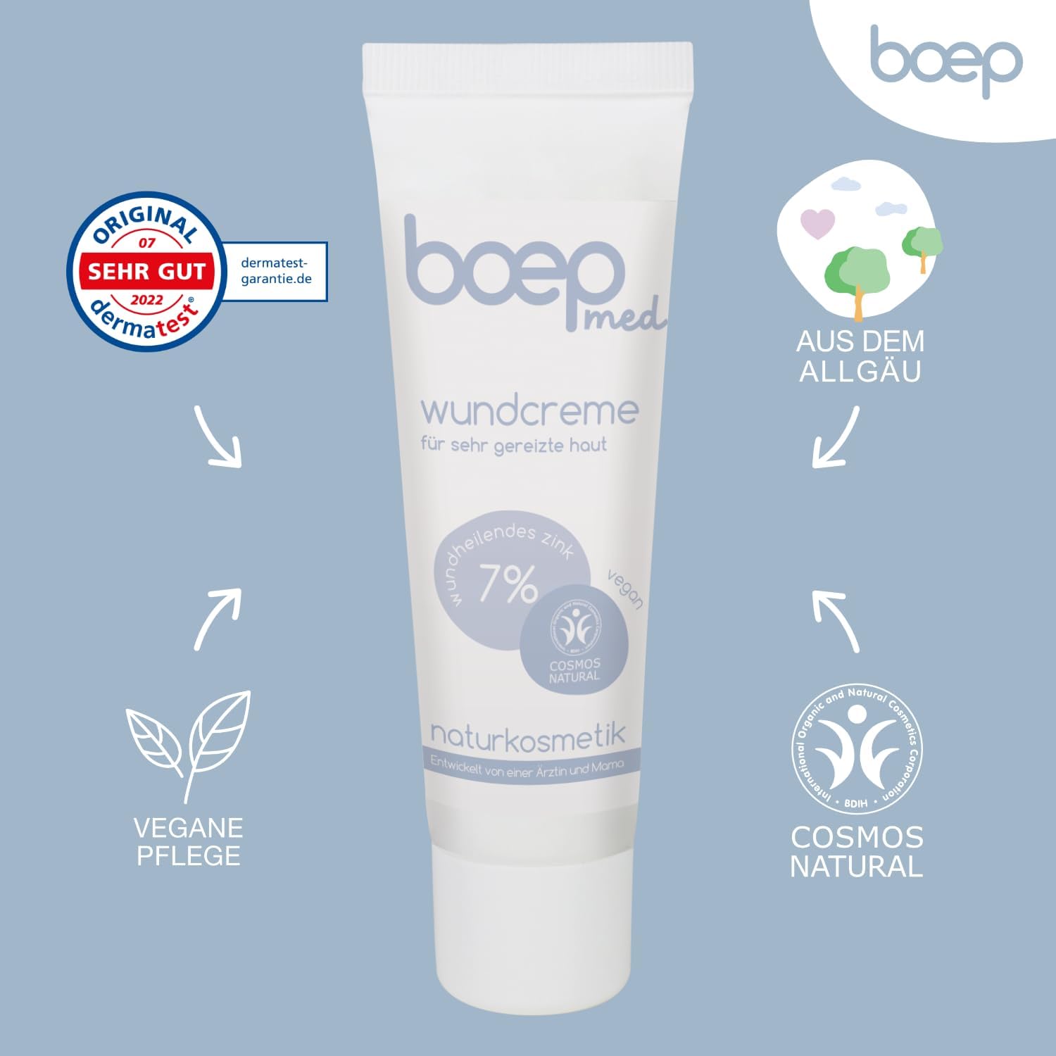 🌱 VEGAN & NATURAL: Bij boep hechten we veel waarde aan goede ingrediënten! Daarom is onze boep med wondhelende zalf veganistisch, gecertificeerd door COSMOS NATURAL en dermatologisch getest met als resultaat “zeer goed”. Onze wondcrème is vrij van minerale oliën, parabenen, siliconen, paraffines en PEG’s.