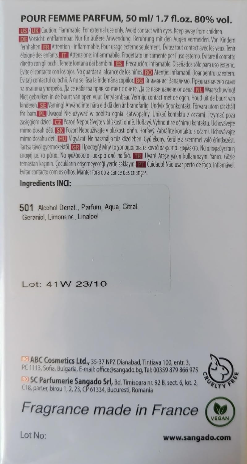 SANGADO GEUREN ZIJN GEBASEERD OP FIJNE INGREDIËNTEN VAN HOGE KWALITEIT. Het merk SANGADO werd gecreëerd door Parfumeur-Créateur Daniel Sangado. Onze parfums zijn gebaseerd op zuivere Franse essentiële oliën van topkwaliteit. Deze zorgvuldig geselecteerde superieure essentiële oliën zijn het echte werk en staan garant voor de kwaliteit van onze parfums. Ze zijn rijk aan karakter over het hele spectrum van noten (top, midden en bodem) die harmonieus voelbaar zijn naarmate de geur zich in de tijd ontvouwt. Wij geloven dat we absoluut de best mogelijke ingrediënten gebruiken voor een goedkoop parfum.