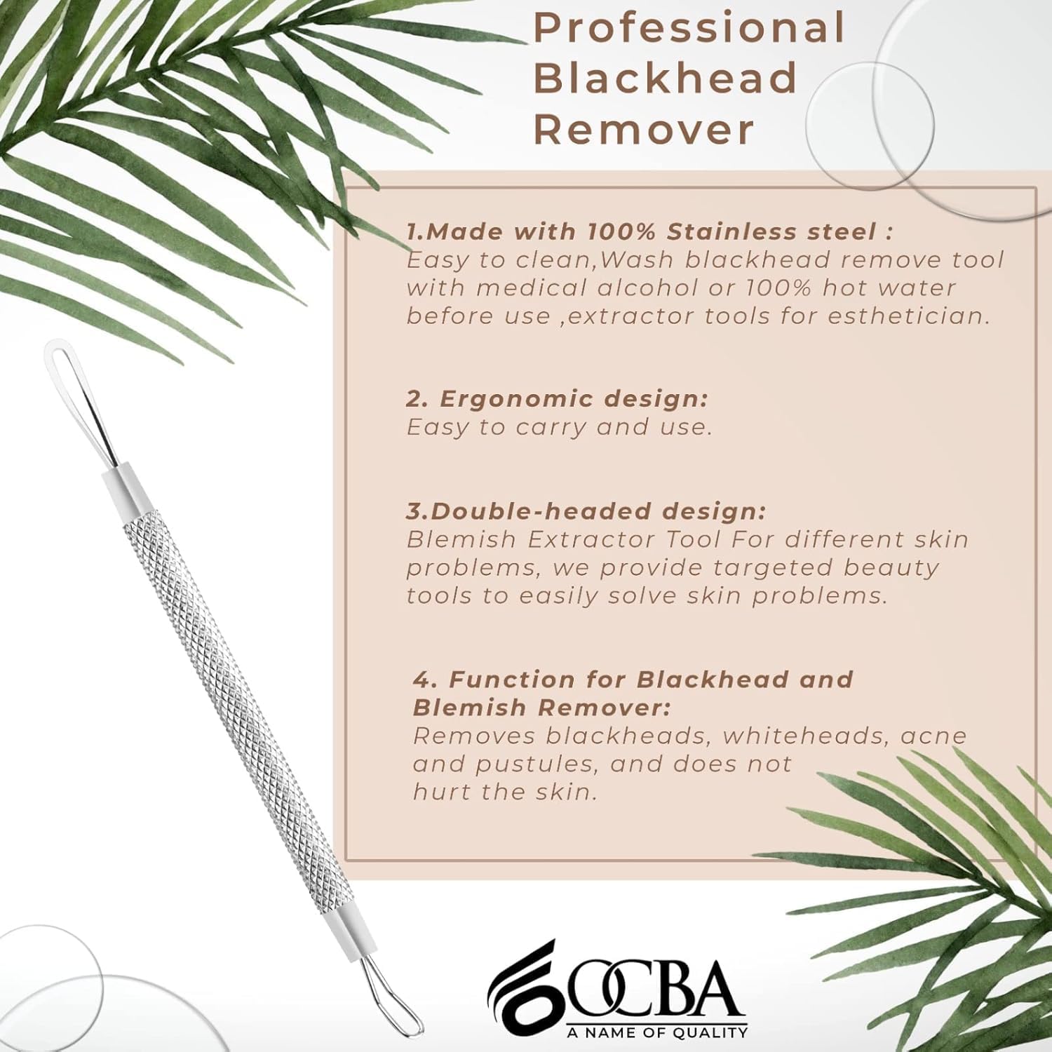 OCBA Black Head Remover Tool is gemaakt van hoogwaardig roestvrij staal om hem schoon te houden. Gebruik dit gereedschap veilig en gezond in plaats van je vingers en maak je geen zorgen meer over littekens.