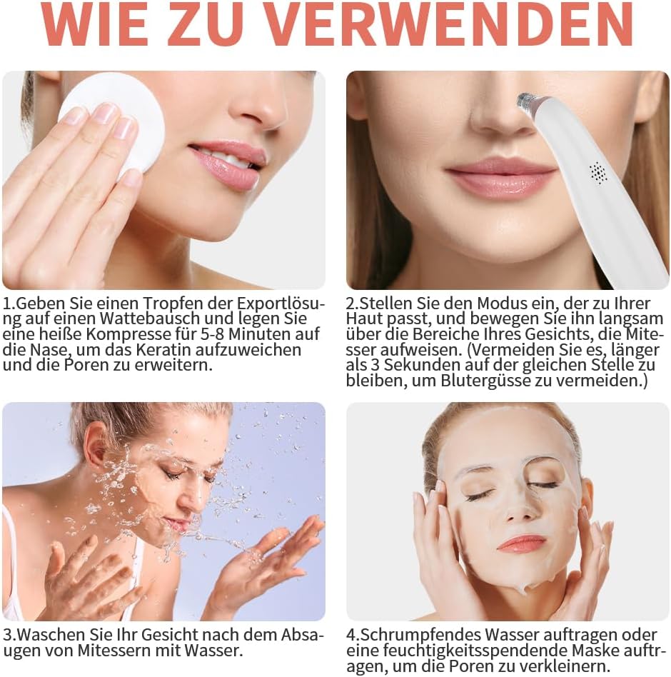 Draagbaar en mooi: de mee-eterverwijderaar is licht, draagbaar en mooi. Voor mensen met mee-eters en iedereen die een professionele reinigingservaring wenst, is deze mee-eter- en acneverwijderaar een geweldig gezichtsverzorgingsproduct, waarmee je van mee-eters op hun neus af kunt komen.