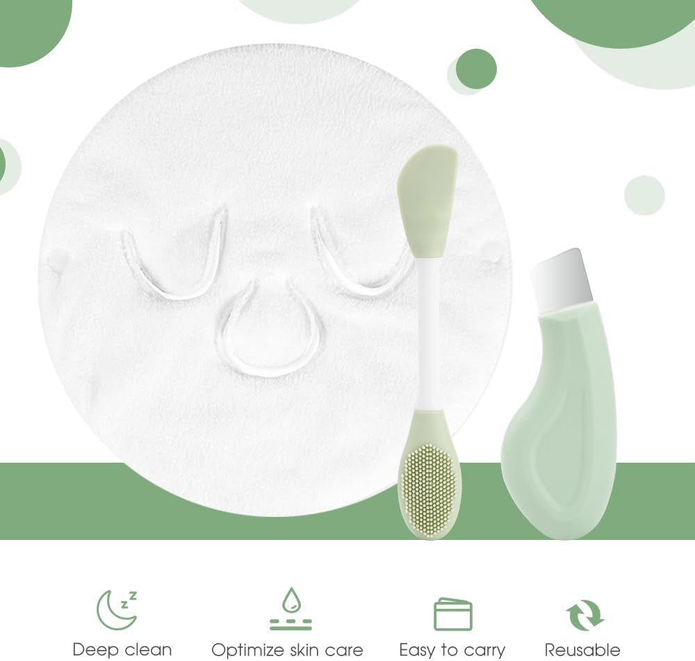 Herbruikbaar en duurzaam: alle gereedschappen kunnen met water worden afgespoeld en de gezichtshanddoek is herbruikbaar, biedt een milieuvriendelijke en duurzame optie. Compact en draagbaar, deze set is ideaal voor gebruik thuis of op reis.