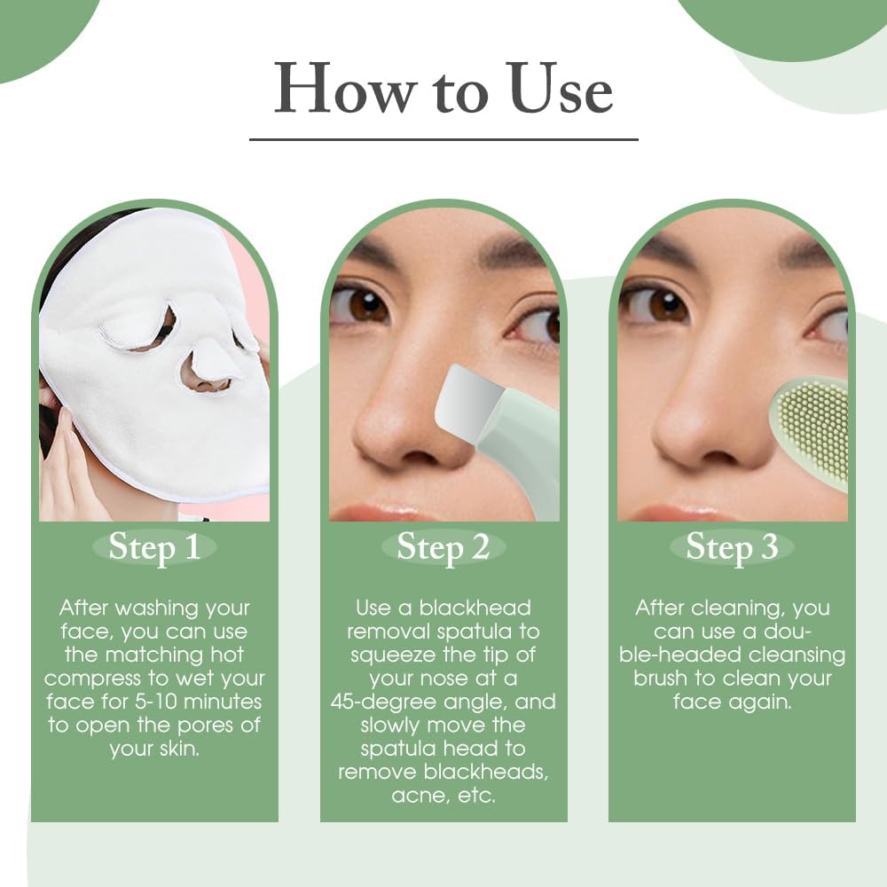 Multifunctionele huidverzorgingsset: deze set bevat een anti-mee-eterschraper, een zachte gezichtsborstel en een herbruikbare handdoek. Het biedt volledige verzorging, helpt bij het exfoliëren en geeft de huid weer glans.