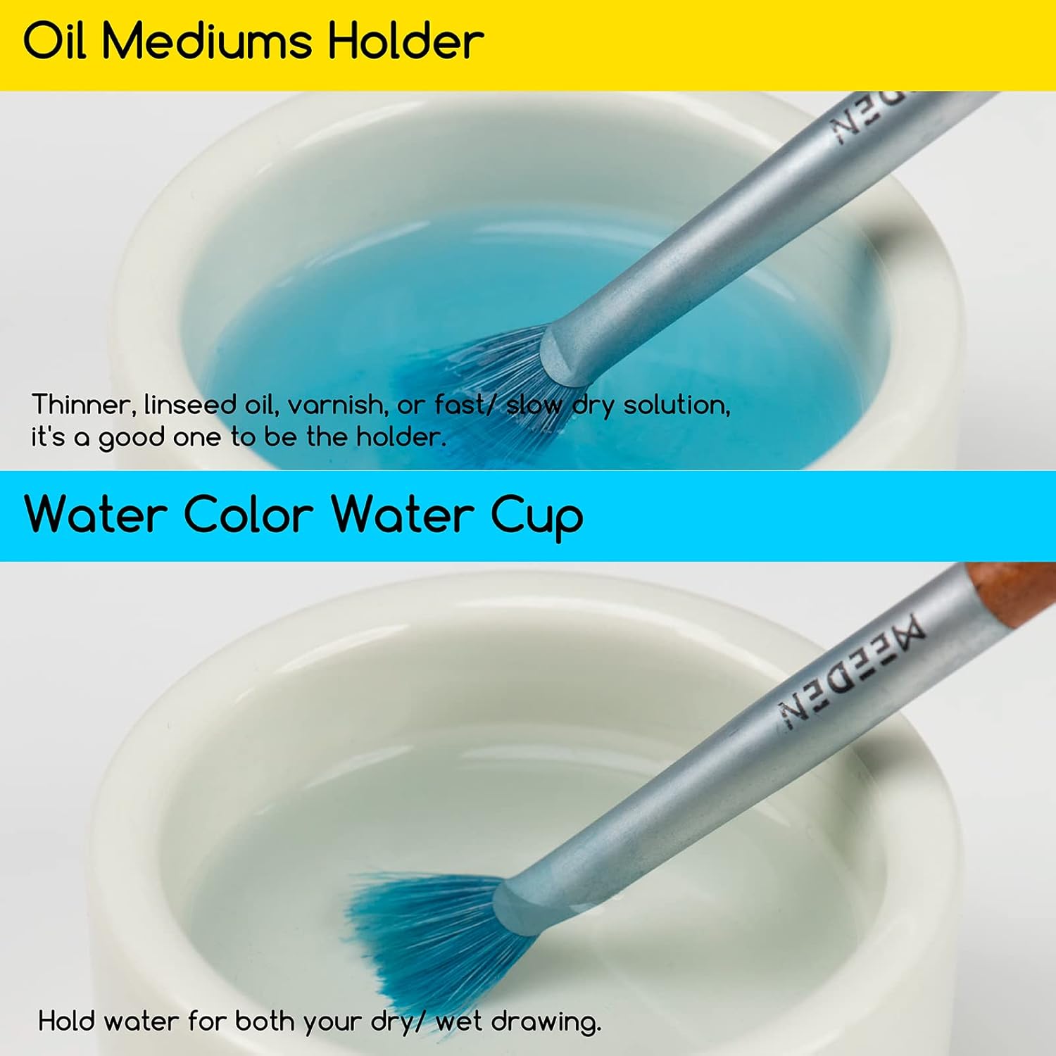 GEMAKKELIJK TE REINIGEN: Door het geglazuurde oppervlak van twee porseleinen bekers, maakt de oliebestendigheid ze kunnen de dippers zijn voor oliemediums en acrylmediums en nog steeds soepel gemakkelijk schoon te maken.