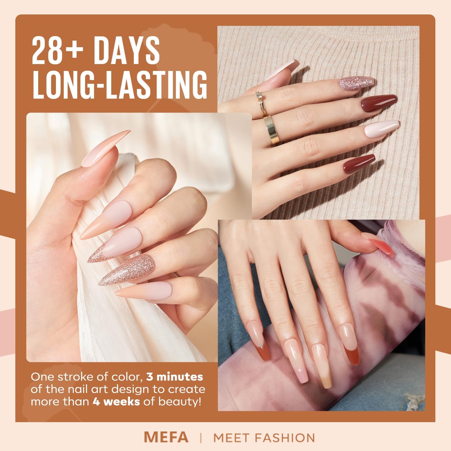 Easy application and good toughness: MEFA UV gel nail polish Set has excellent color development thanks to the smooth formula of the gel nail polish set and the unique, easy-gliding brush. One application ensures even coloring, two applications ensure better results