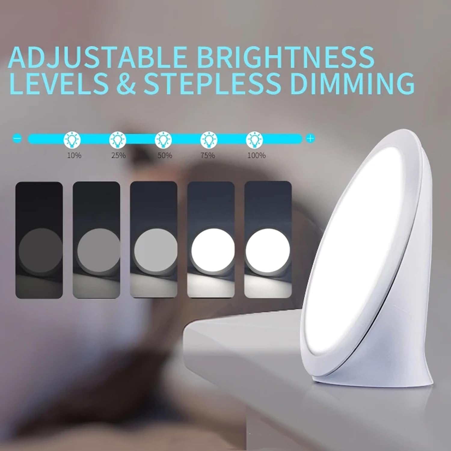 3 kleurtemperaturen en elektrodevrije dimverzorging voor uw ogen en huid. Kies een hoogwaardige LED-lichtbron om een gezellige huiselijke sfeer te creëren. LED-afdekking met antiverblinding, dicht bij zonlicht, maar 100% UV-vrij. Het licht is zacht en niet-verblindend, verzorgt uw ogen zachtjes en verlicht vermoeidheid van de ogen. Opmerking: Kijk a.u.b. niet rechtstreeks in de lichttherapielamp.