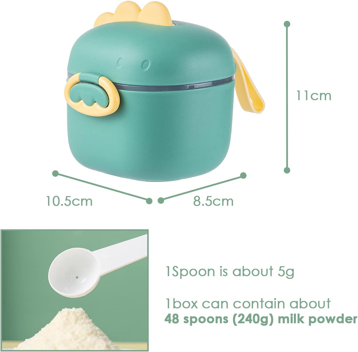 Melkpoeder Portioneerder Baby 240 g Container Luchtdichte Melkpoeder Dispenser Draagbare Dispenser Box Container met schraper en lepel voor het bewaren van fruit Levensmiddelen, Dinosaurus