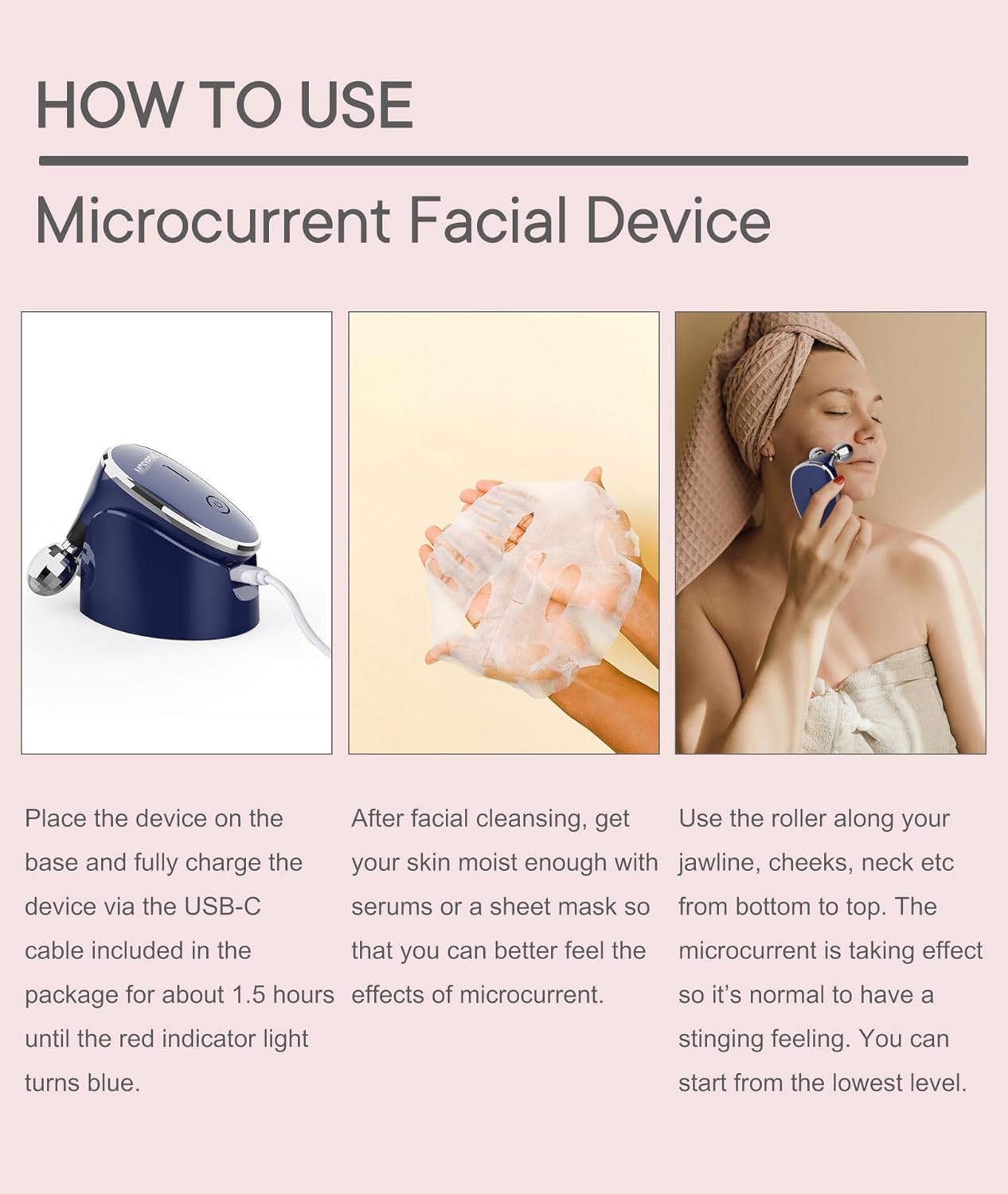Eenvoudig te gebruiken – Houd je gezicht vochtig genoeg met je favoriete huidverzorgingsproducten voor gebruik. Begin op laag niveau en verhoog het niveau geleidelijk. U kunt dit microstroom gezichtsapparaat 10 minuten per dag gebruiken.