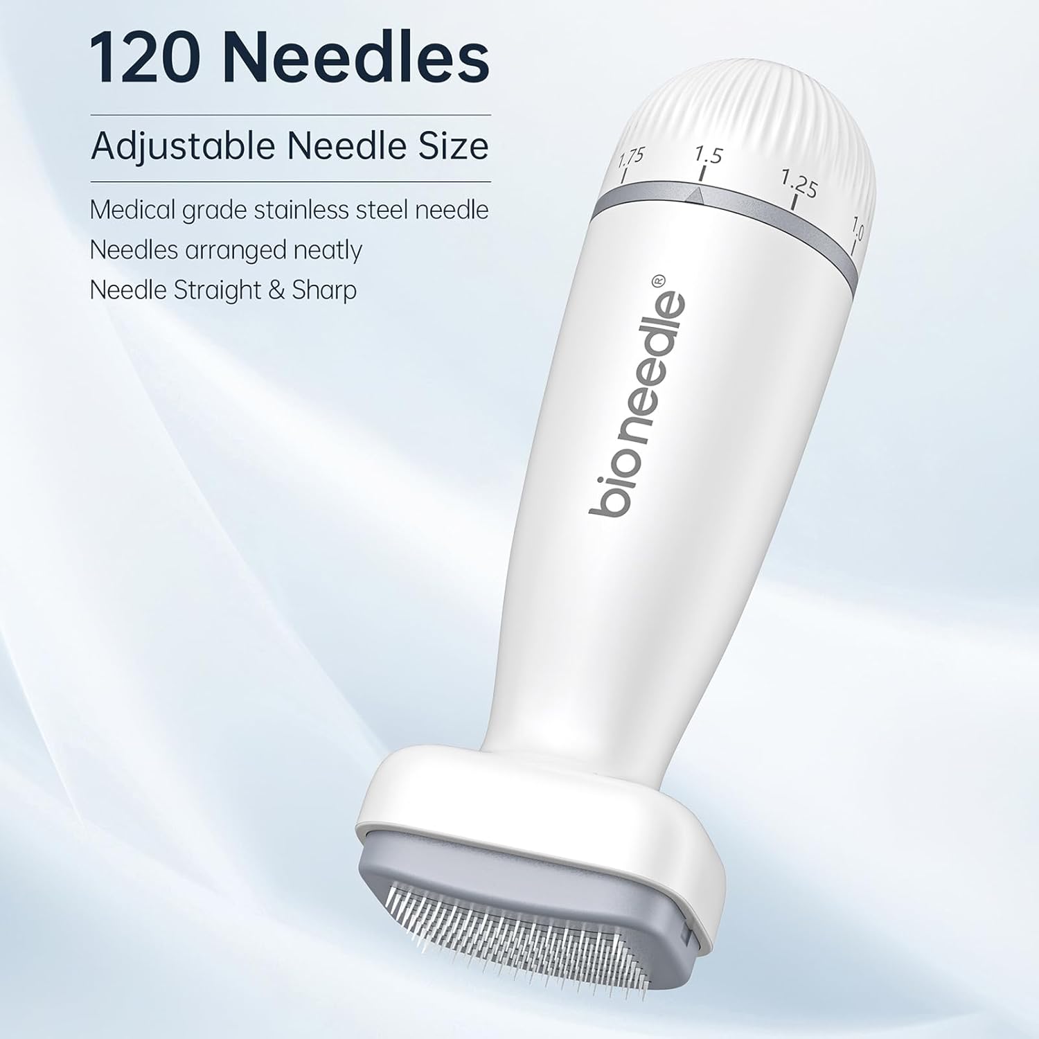 Microneedling, dermaramp, instelbare microneedling dermaramp, professionele microneedling stempel met 120 afzonderlijke echte titanium micronaalden voor haar, baardgroei, gezicht, lichaam