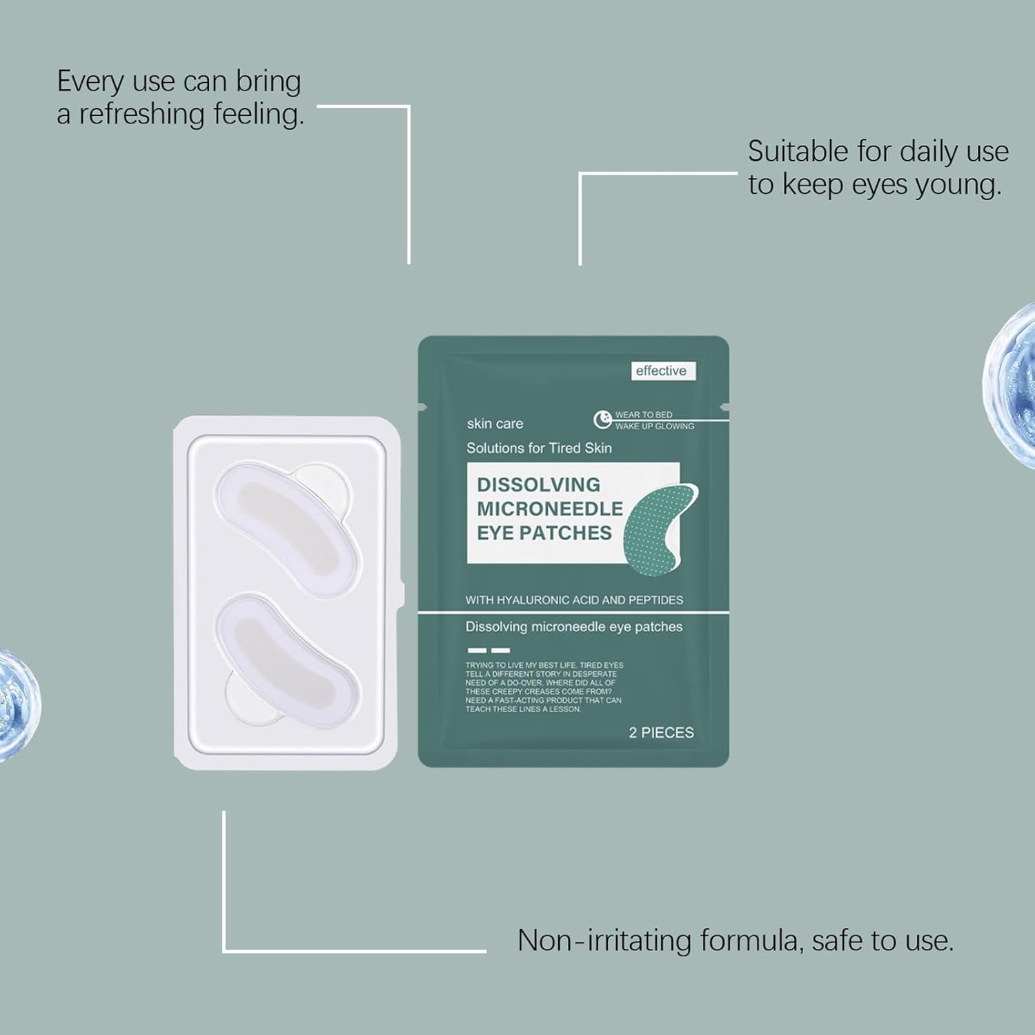 Microneedling Serums Huidverzorging, Pack van 4 Oplossende Microneedle Oogpleisters, Microneedle Patches met Hyaluronzuur, Hydraterende maskers onder de ogen voor gezwollen ogen en donkere kringen