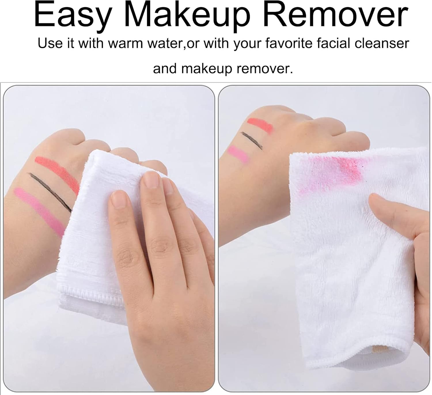 Zachte doeken, haalt make-up er goed af met water.