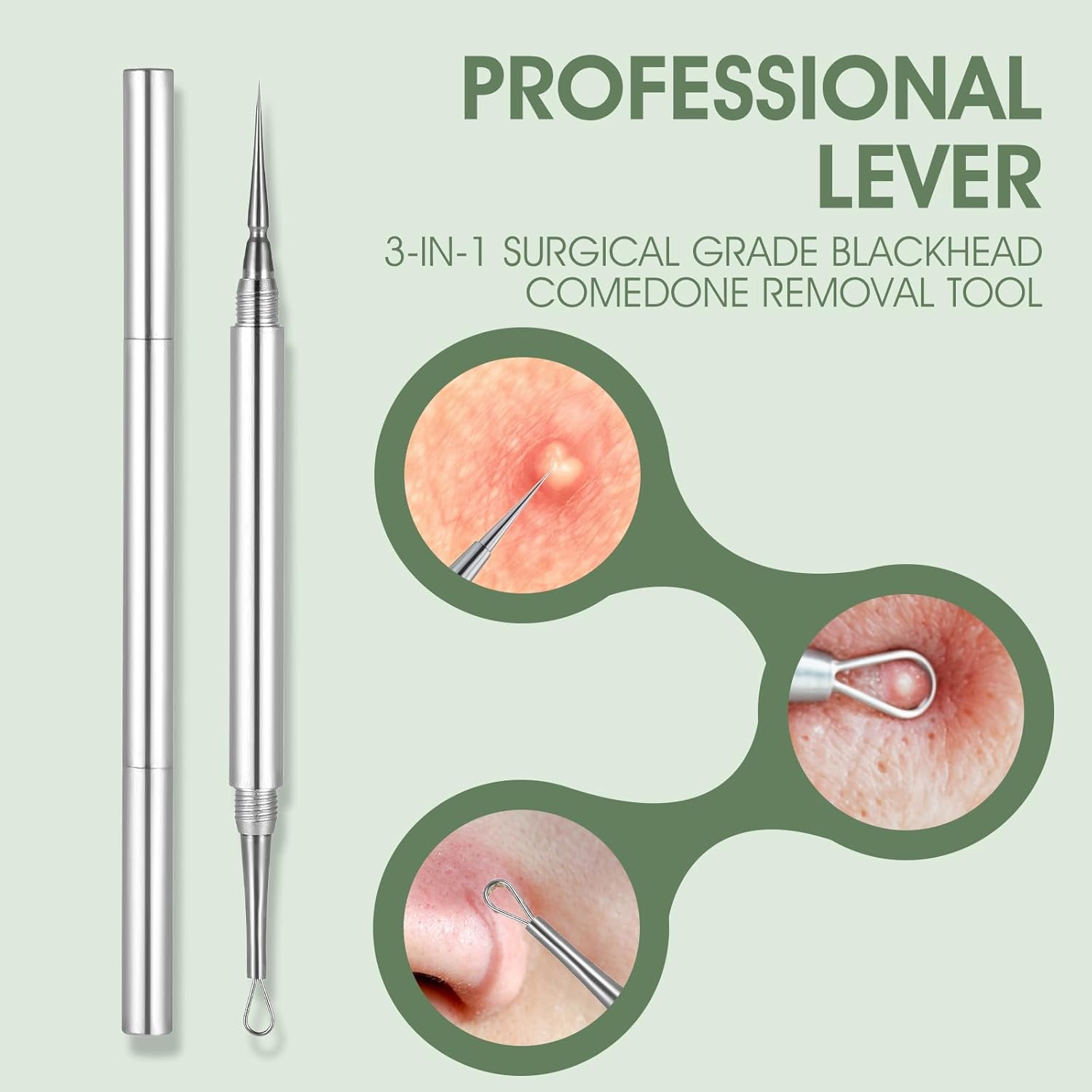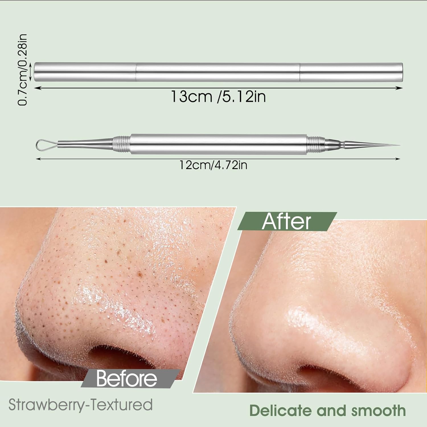Hoogwaardig gereedschap: de roestvrijstalen milienverwijderaar is een betrouwbaar hulpmiddel voor gezichtsverzorging. Het is duurzaam en hygiënisch, perfect geschikt om mee-eters, puistjes en onzuiverheden te verwijderen, zonder de huid te beschadigen. Met zijn uitstekende kwaliteit zorgt hij voor een nauwkeurige en effectieve reiniging van de poriën.